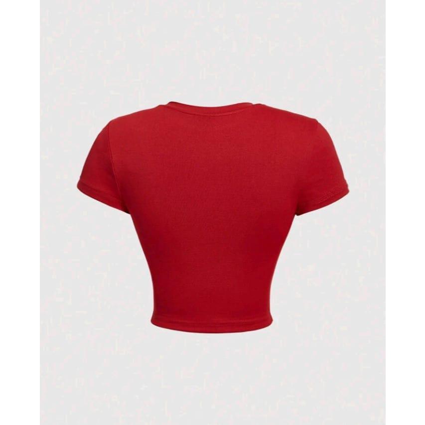 Df - Crop Top Wanita Red Cherry Kekinian Terbaru / Baju Crop Top Wanita Lengan Pendek Knit Rib