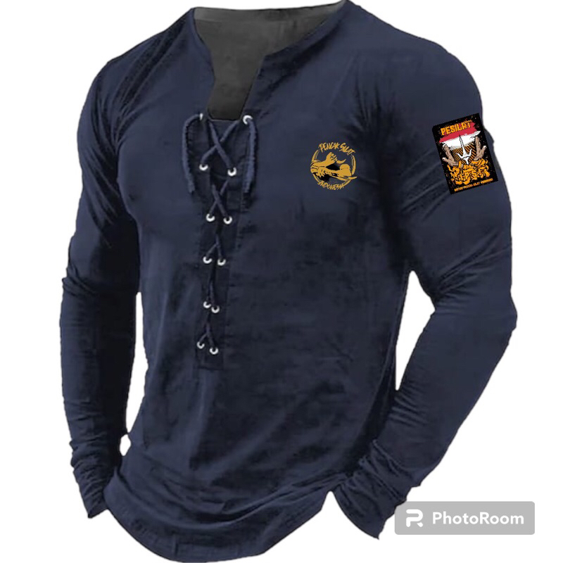 FREE ONGKIR NO - KAOS LENGAN PANJANG V NECK TALI PENCAK SILAT DISTRO / KAOS SILAT / KAOS CASUAL /