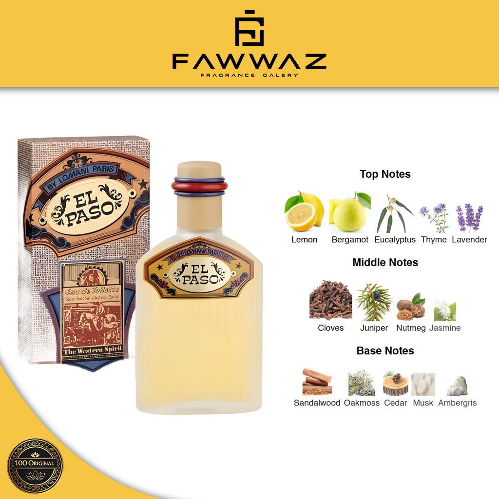 Lomani El Paso Men EDT 100ml – Parfum Pria Maskulin Segar Woody Aromatic Tahan Lama Original