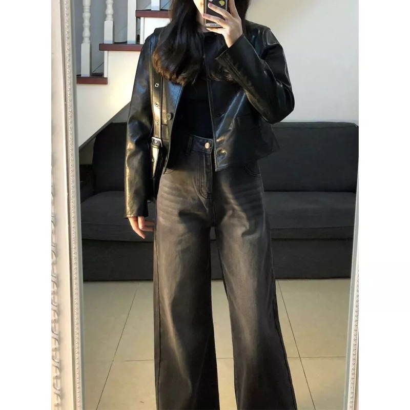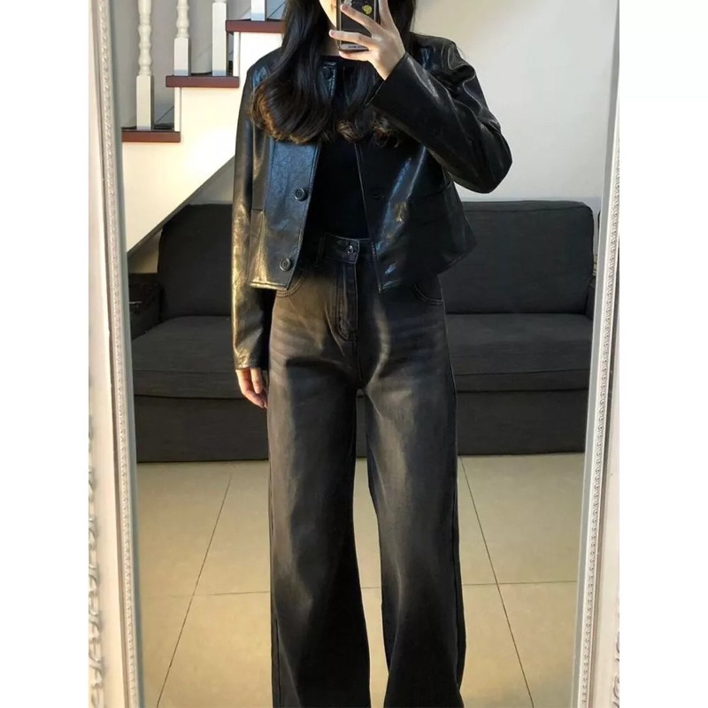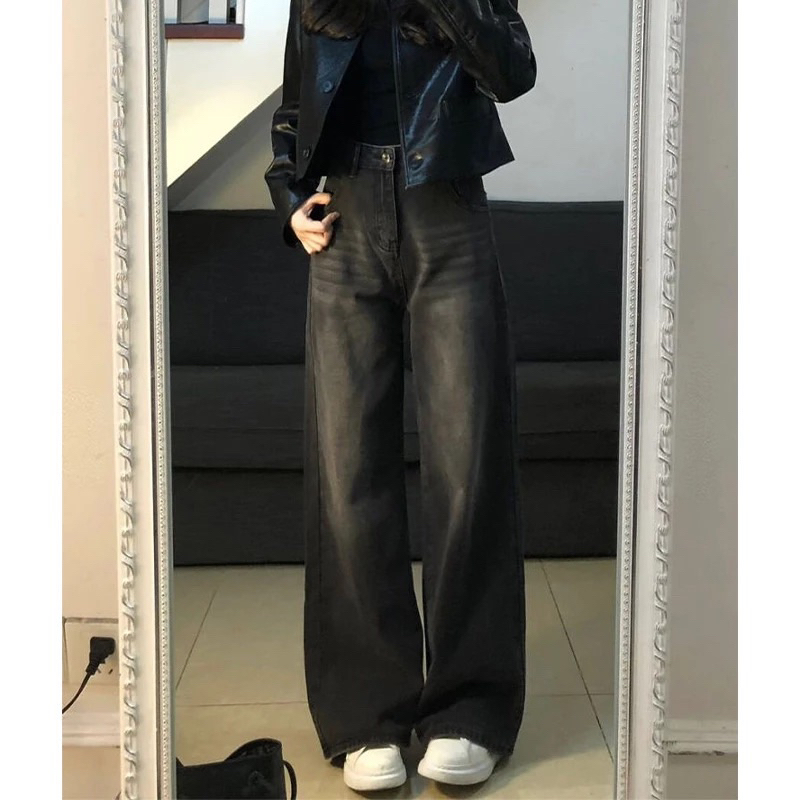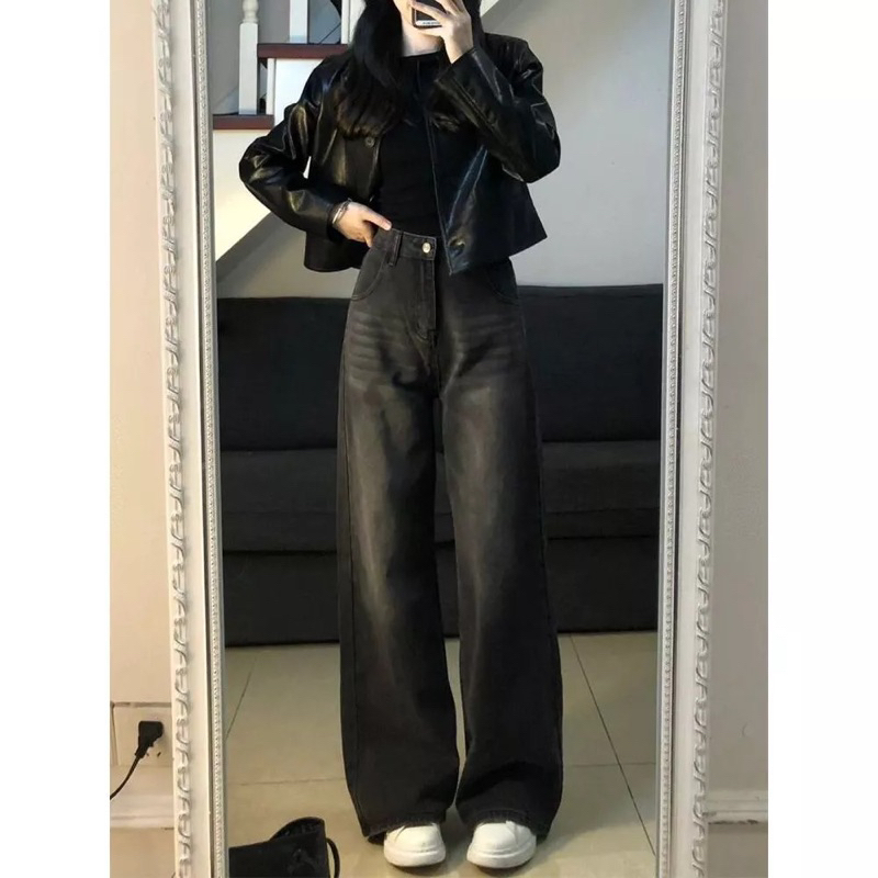 COD LULU Abu abu High Waist New Celana Jeans Panjang Wanita
