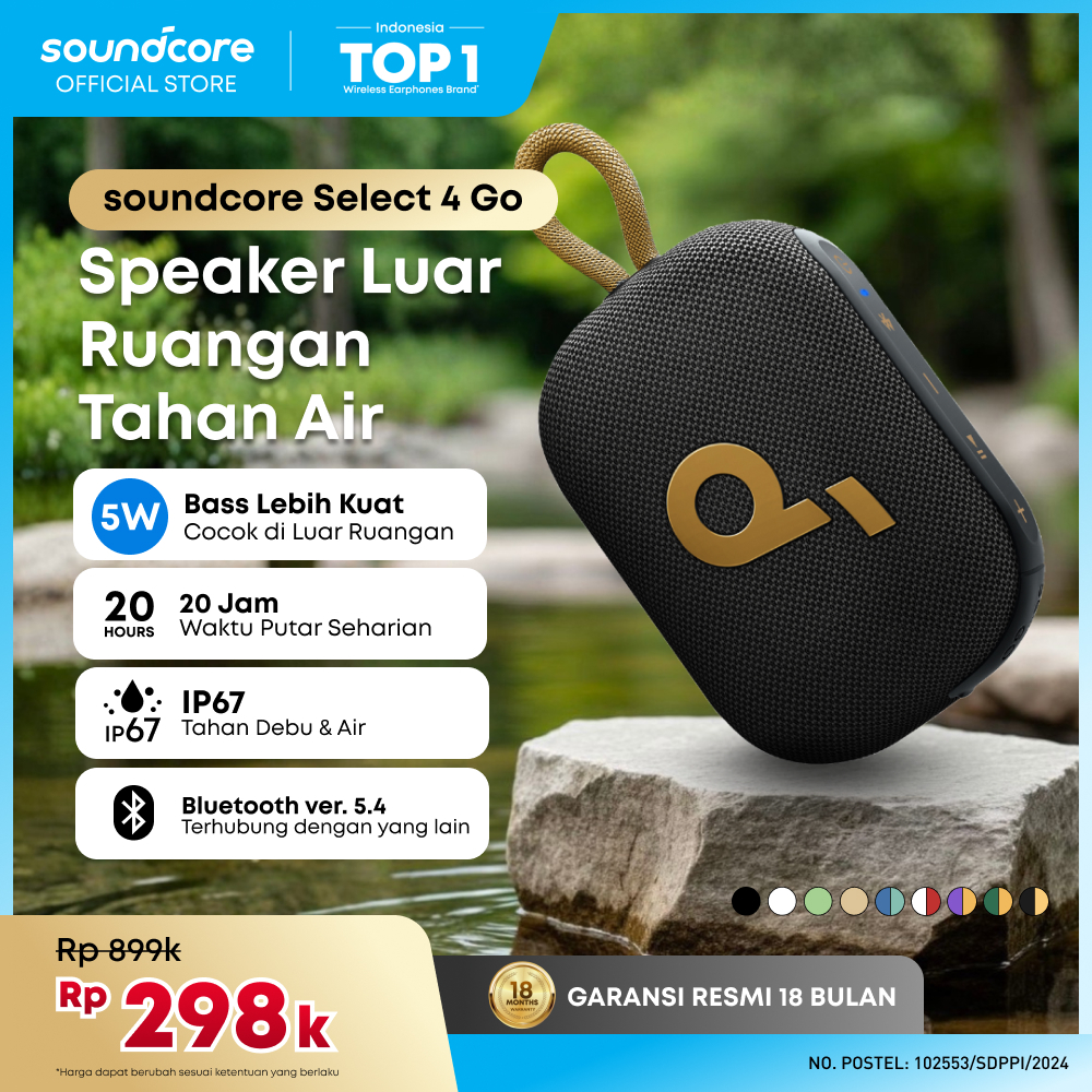 Soundcore by Anker Select 4 Go Wireless Speaker Bluetooth 5.4 Waterproof and Dustproof IP67 Portable Speaker Up to 20 Hours of Playtime - A31X1