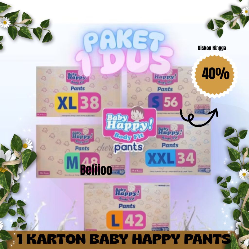 [1 KARTON] ISI 4 BIG SALE BABY HAPPY PANTS JUMBO & SUPER JUMBO S56//M48/L42/XL38/XXL32 BELIOOO