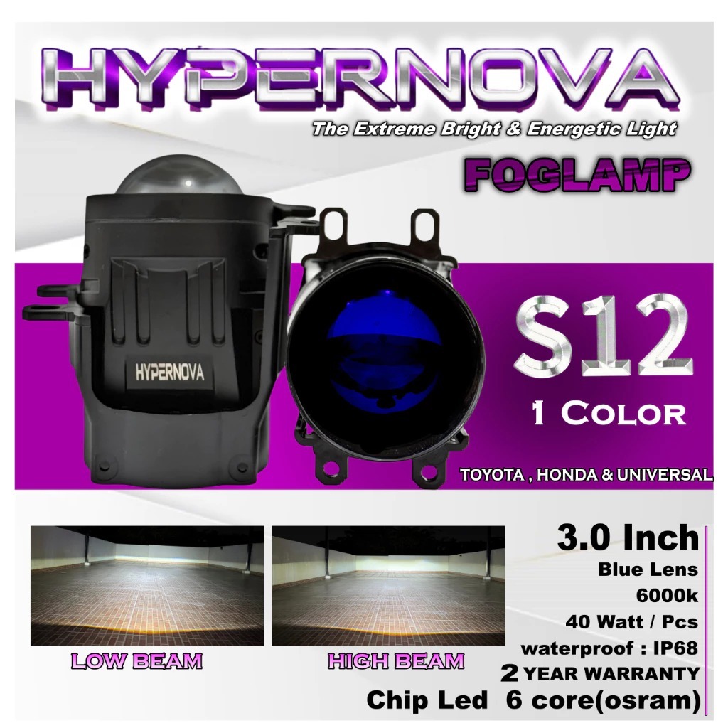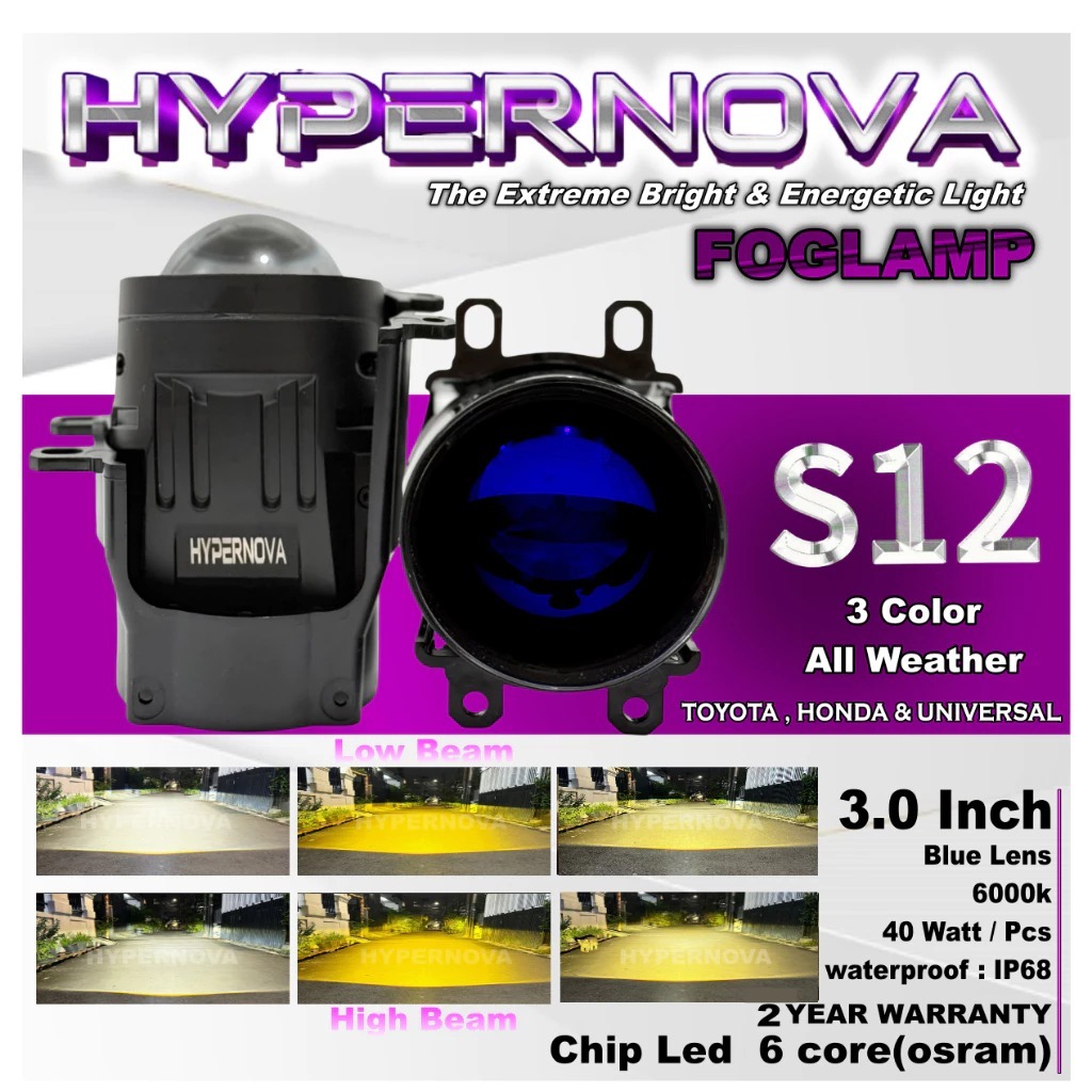 HYPERNOVA - ORIGINAL LAMPU BILED FOGLAMP HYPERNOVA S12 80 WATT BLUELENS FOGLAMP 3 WARNA 1 WARNA LAMPU MOBIL KABUT