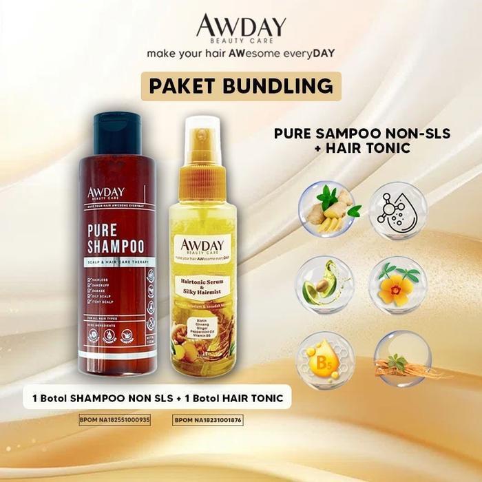 VARIAN BUNDLING AWDAY PURE SHAMPOO NON SLS + HAIRCREAM CONDITIONER + HAIRTONIC - SAMPO NON SLS+HAIRCREAM BPOM