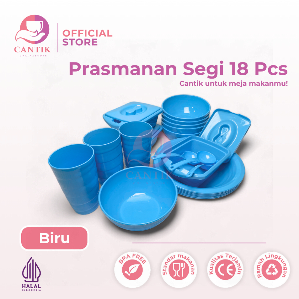 Cantik Prasmanan Set Paket 18 Pcs Wadah Makan Estetik Free Centong Piring Mangkok Plastik Tempat Penyimpanan Sayur Bentuk Segi Warna Biru