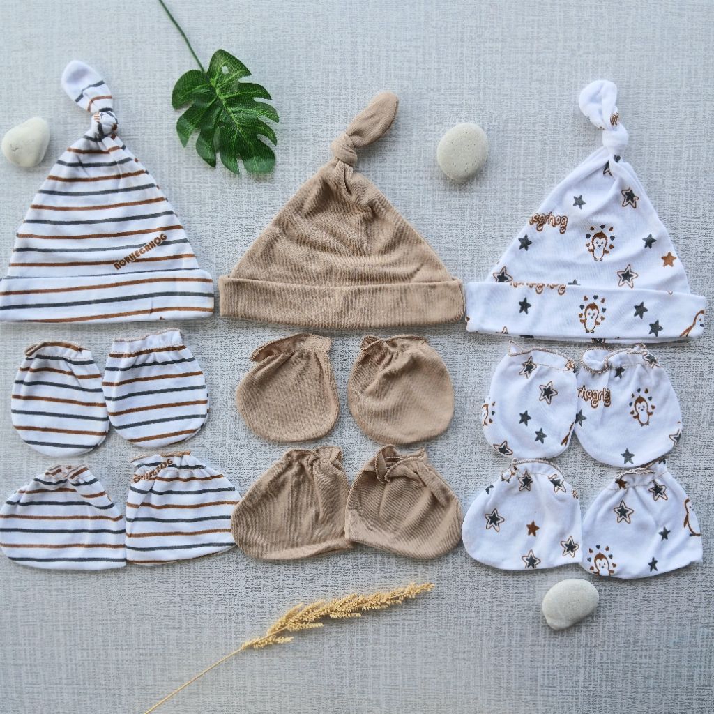 3 Set Topi Kupluk Sartaki Sarung Tangan Dan Sarung Kaki Bayi 0-3 Bulan Bahan Lembut Seri Moka