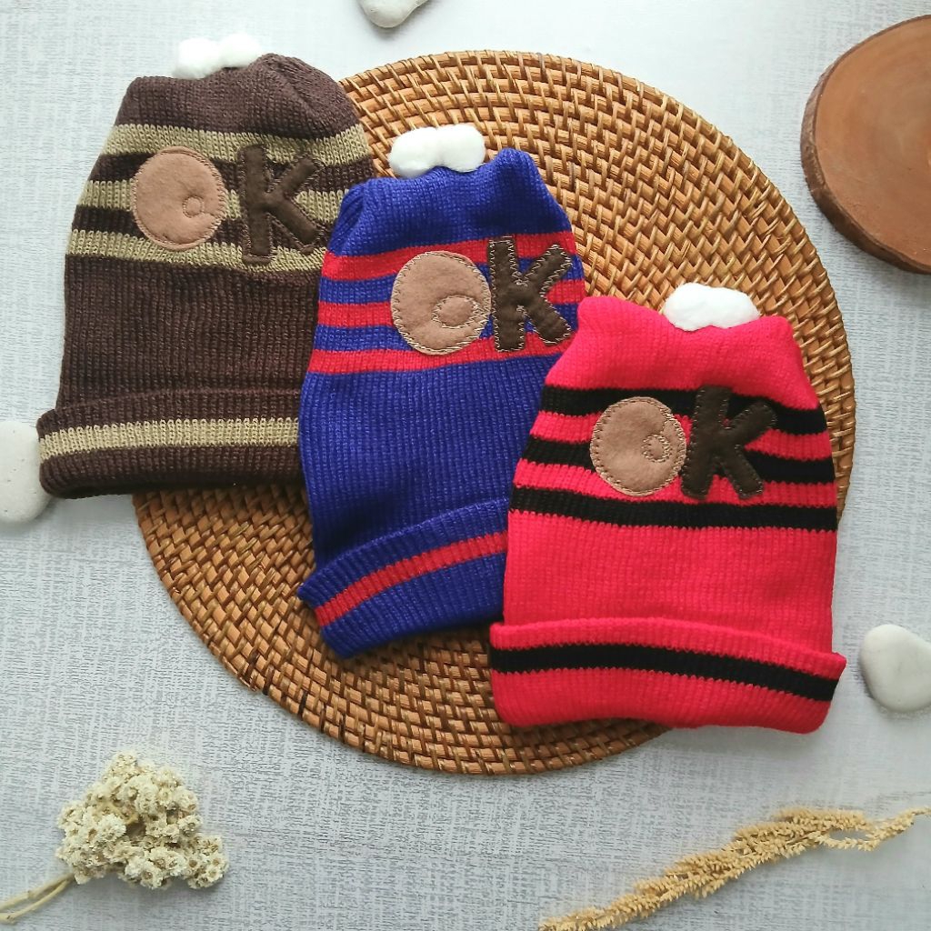 3 Pcs Topi Kupluk Bayi Rajut Tebal Lingkar Kepala 35-45 cm