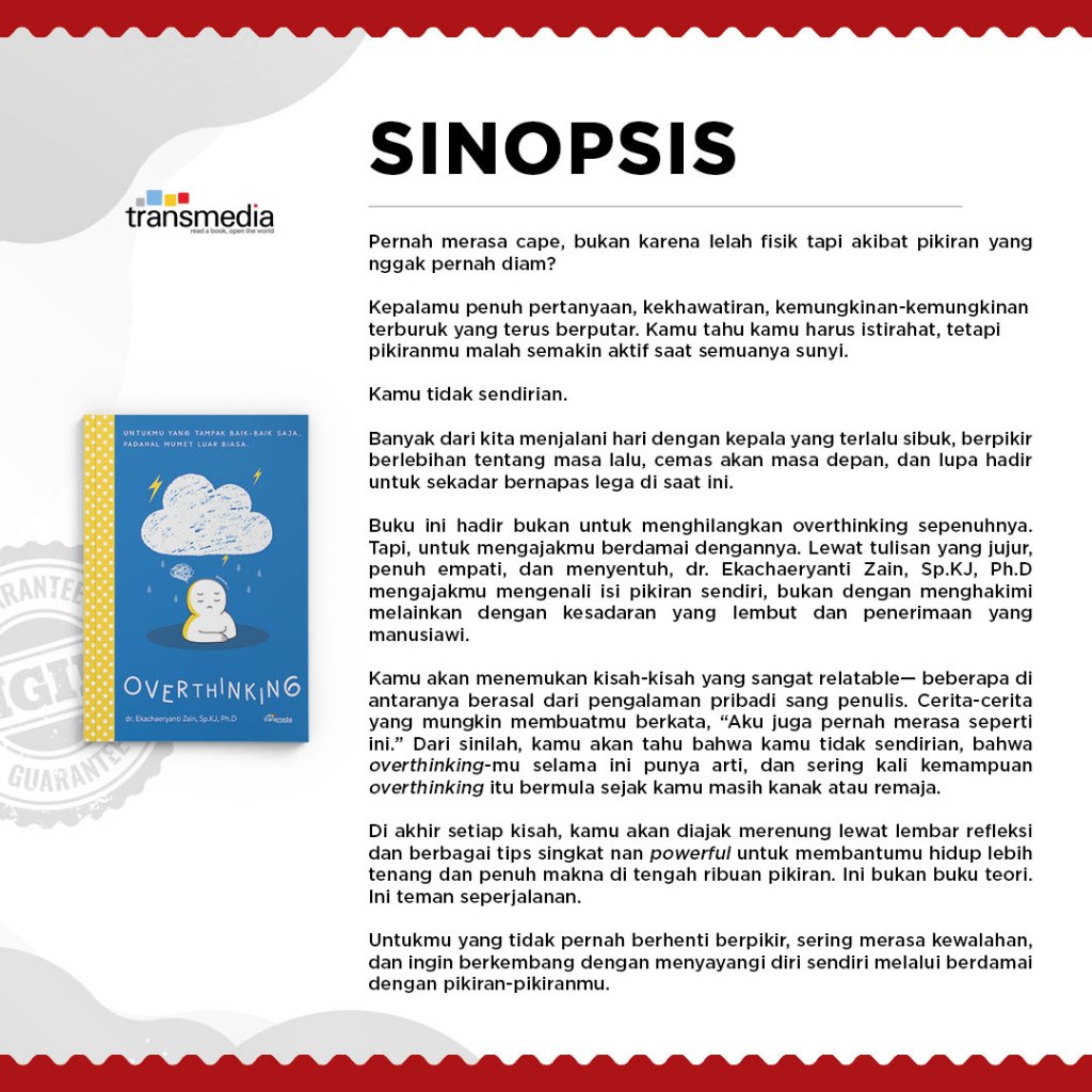 Buku Overthinking: Untuk Kamu yang Tampak Baik-baik Saja, Padahal Mumet Luar Biasa - dr. Ekachaeryanti Zain, Sp.KJ, Ph.D