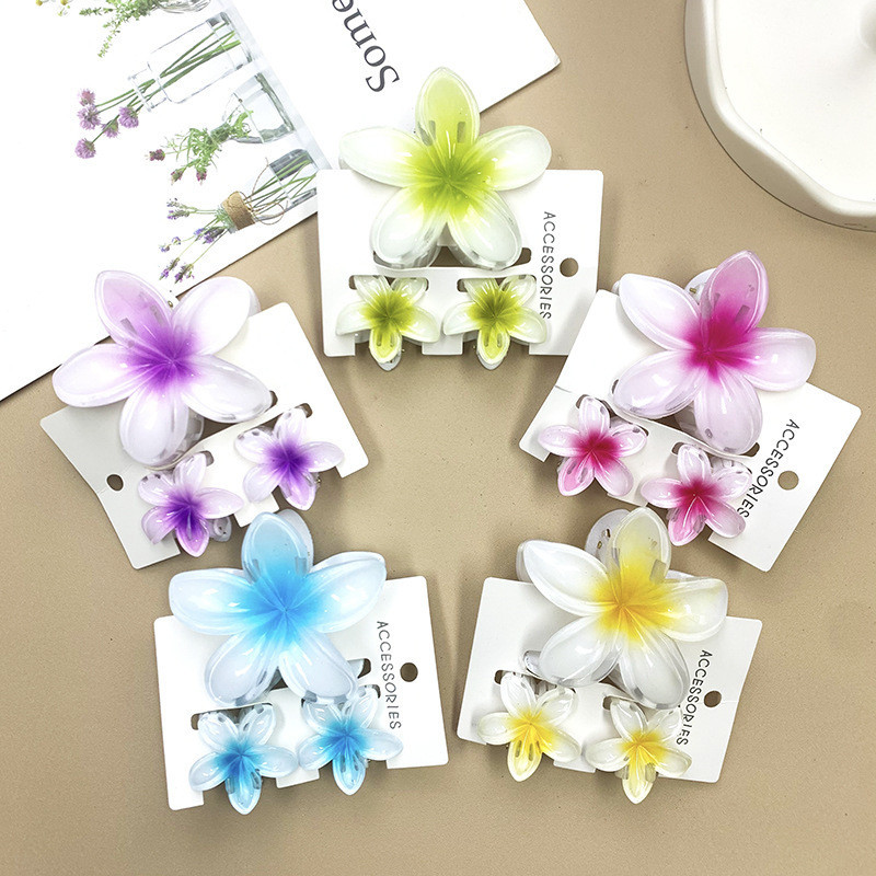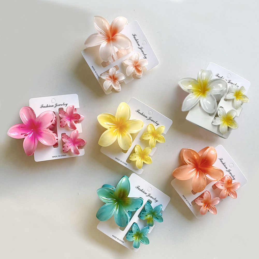 WEIOSON Jepit Rambut Bunga Kamboja Set Isi 3 Pcs Jedai Rambut Wanita Hair Clip Glossy Aksesories Rambut Bunga Bali Cantik Warna Soft Aesthetic