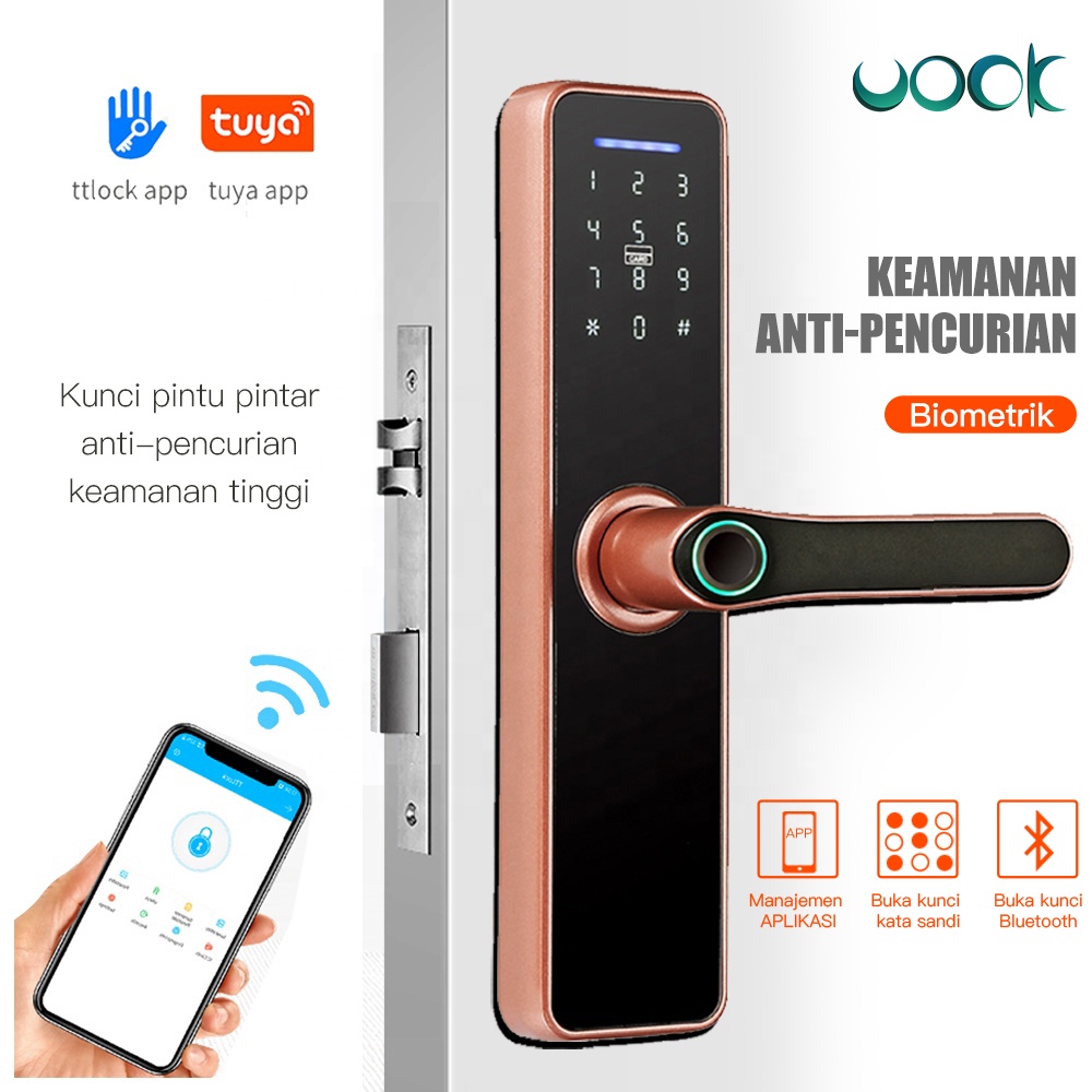 [UOOK] Tuya X7 Smart Lock Door Keamanan Tinggi Tuya Anti Pencurian Pintu Sidik Jari Biometrik Cerdas Elektronik Sidik Jari WiFi TTlock Door Lock
