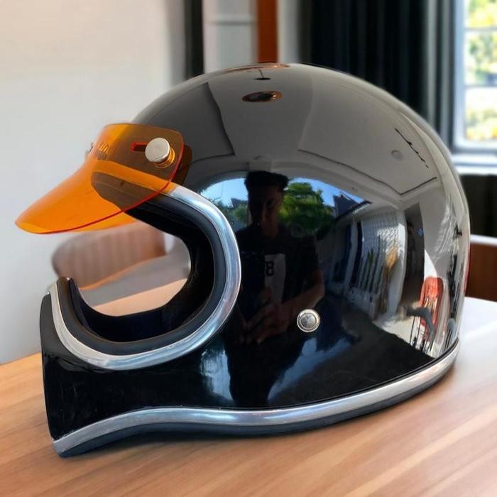 Helm Cakil Sardjo V2 + Inner Visor - HItam Glossy, Pet Putih, Size M