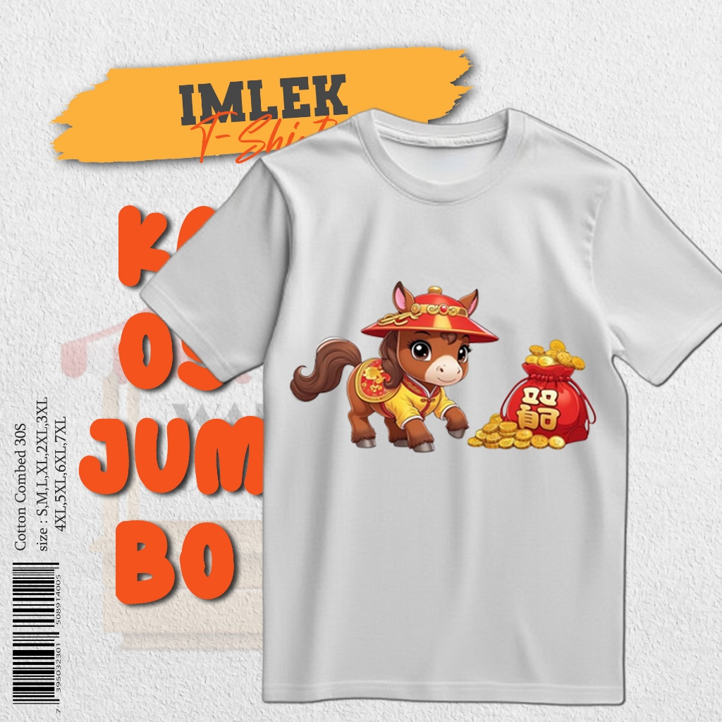 Kaos Imlek 2026 Kuda Pria Wanita Dewasa Jumbo Big Size Couple Keluarga Katun 30S