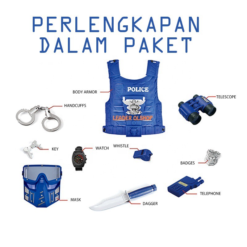 MAINAN SET PERLENGKAPAN TEAM SWAT POLICE PERALATAN EDUKASI POLISI ANAK 10 ITEM LENGKAP