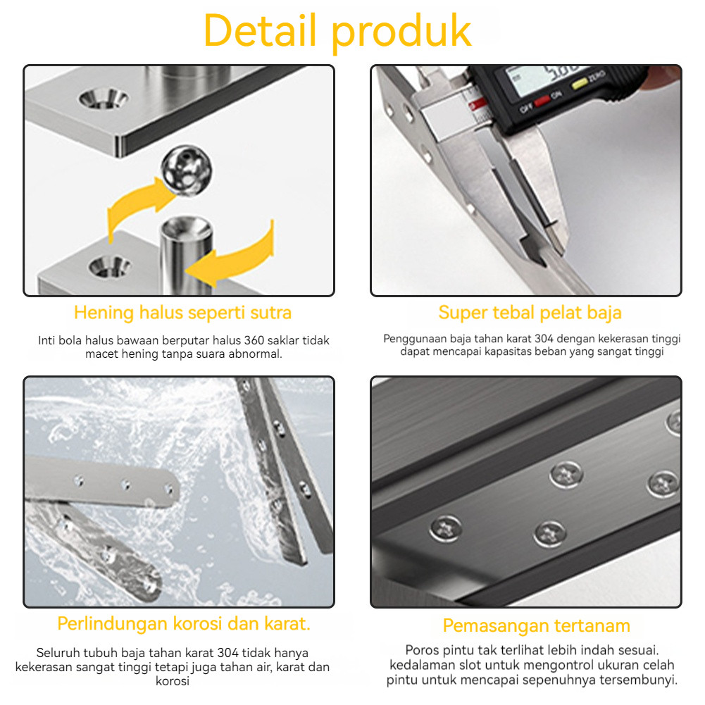 Engsel Pivot Rotasi 360° Stainless Besi untuk Pintu Kayu, Dekorasi Rumah & Komersial