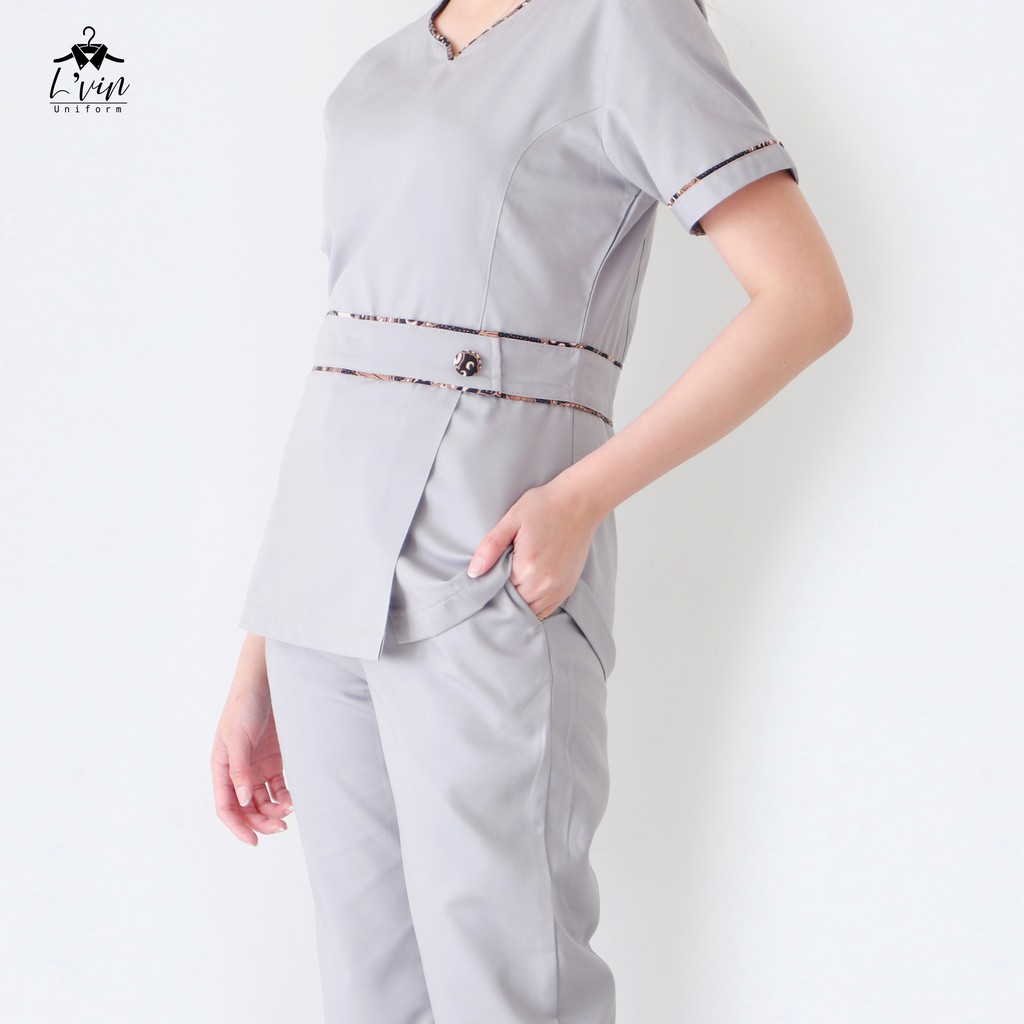 Baju Seragam suster Lvin Peplum Batik / Yeri Series / baju babysitter / nanny uniform/seragam klinik/ baju jaga oka