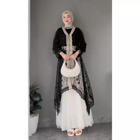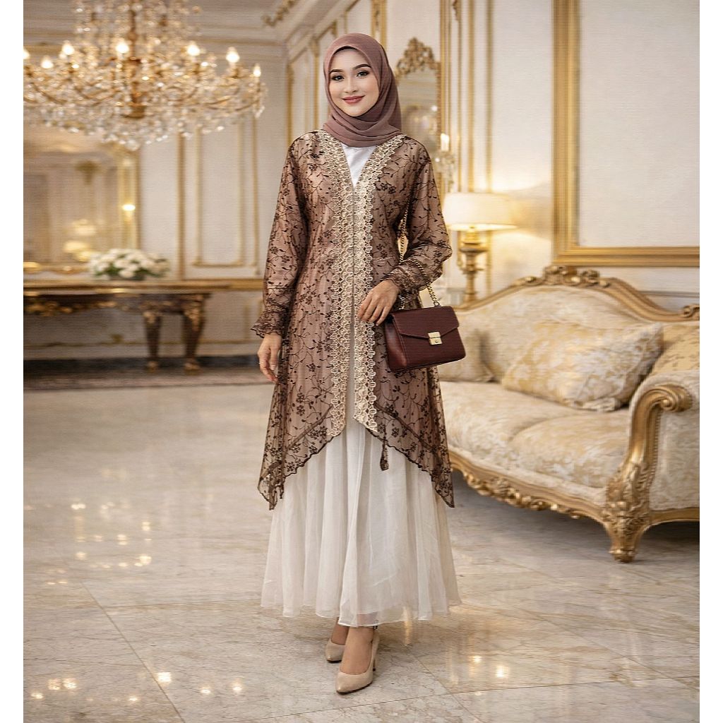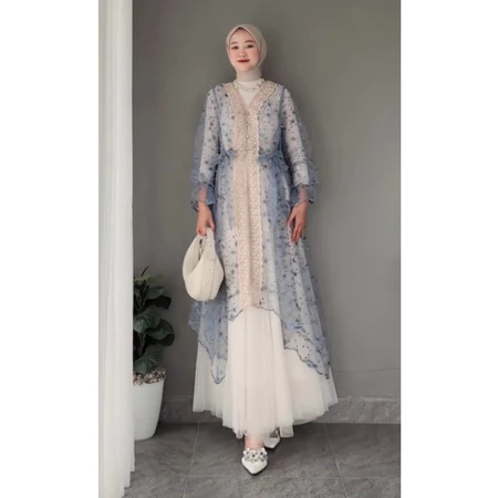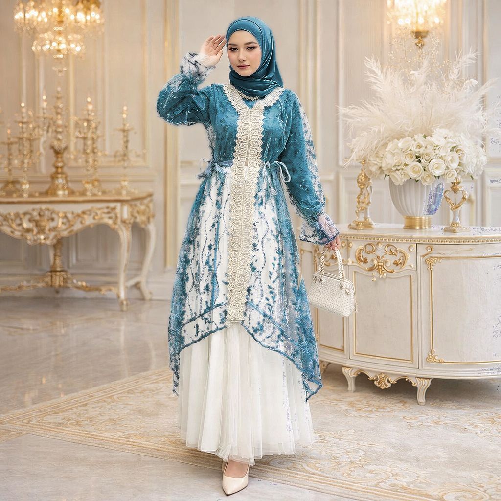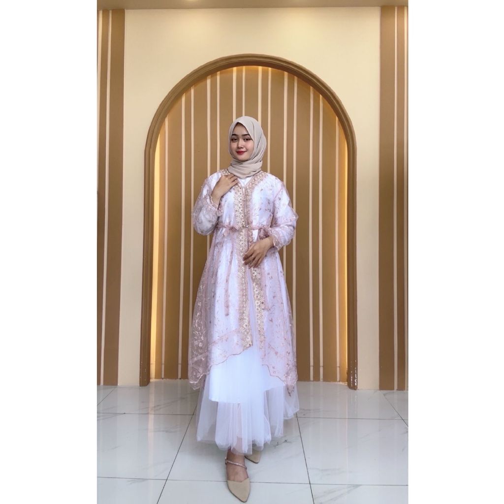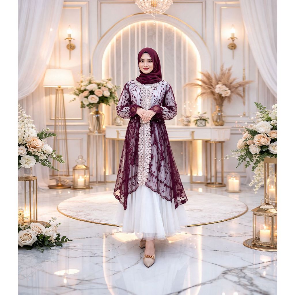 Raya Dress satu Set Inner Outer Dan Rok Tutu Elang Busana Gamis Muslim Wanita Pesta Kondangan