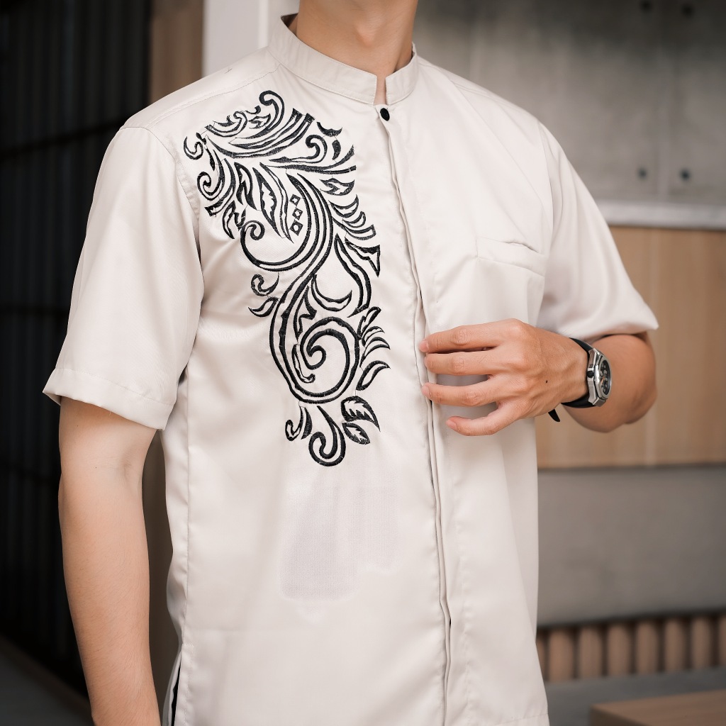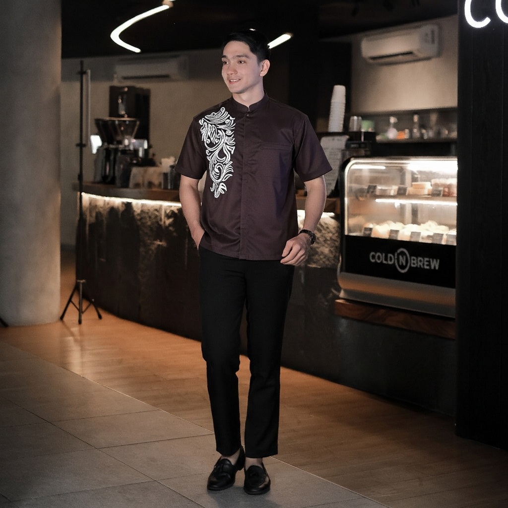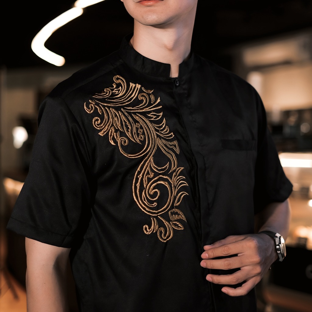 Saudagar Klambi - Baju Koko Bordir Pria Lengan Pendek Warna Burgundy Ivory Hitam Terbaru 2026