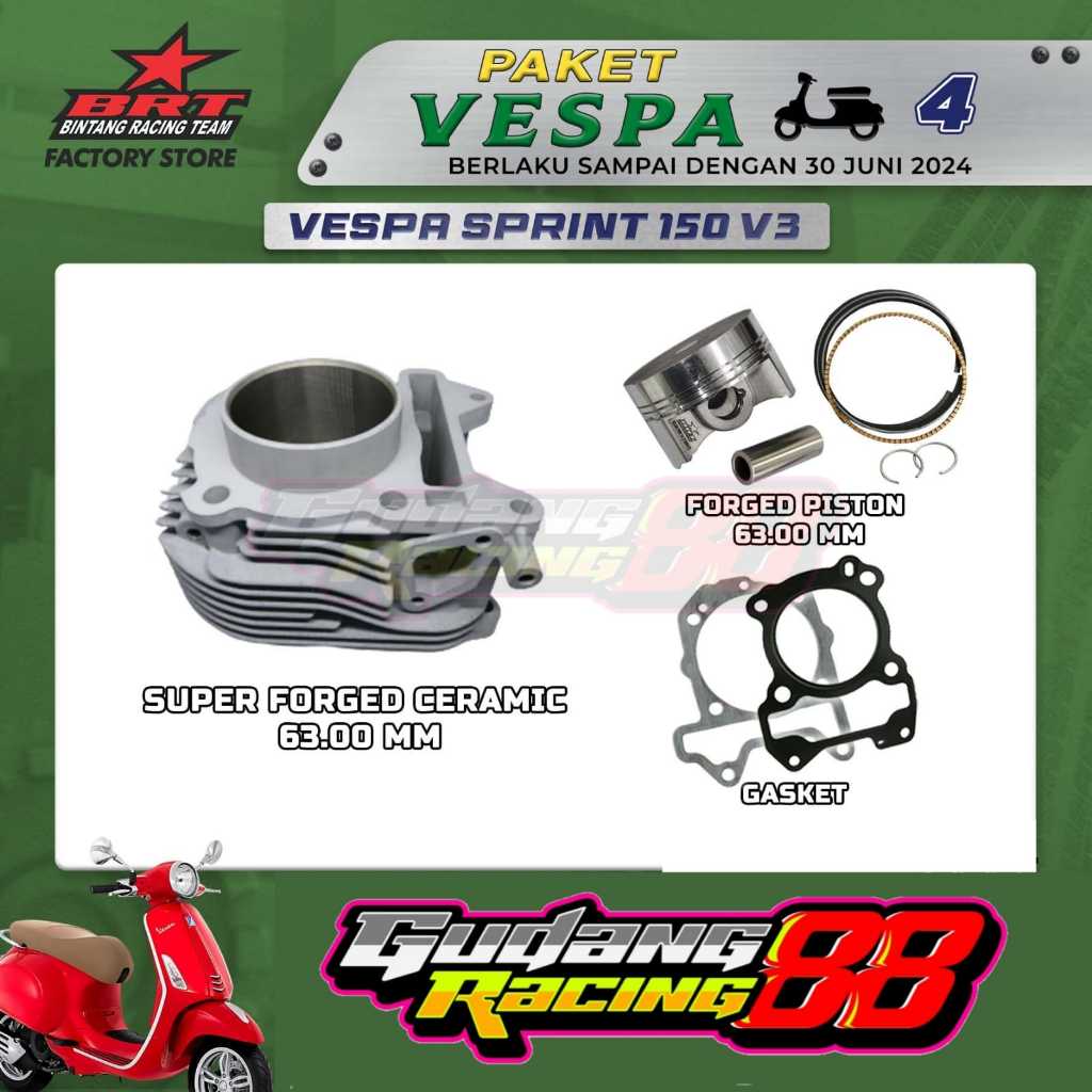 PAKET BORE UP CRF BLOK CERAMIC VESPA SPRINT V3 150 63 MM + PISTON FORGED ORIGINAL BRT