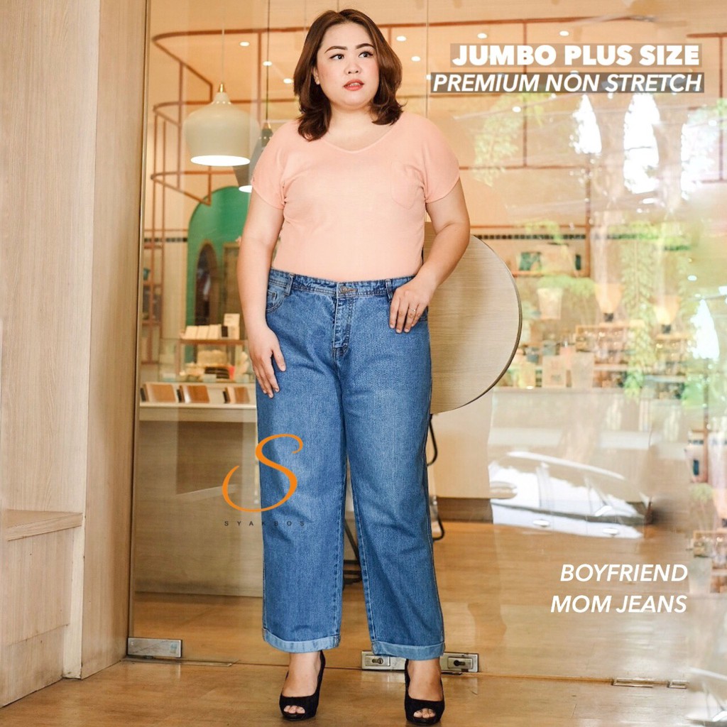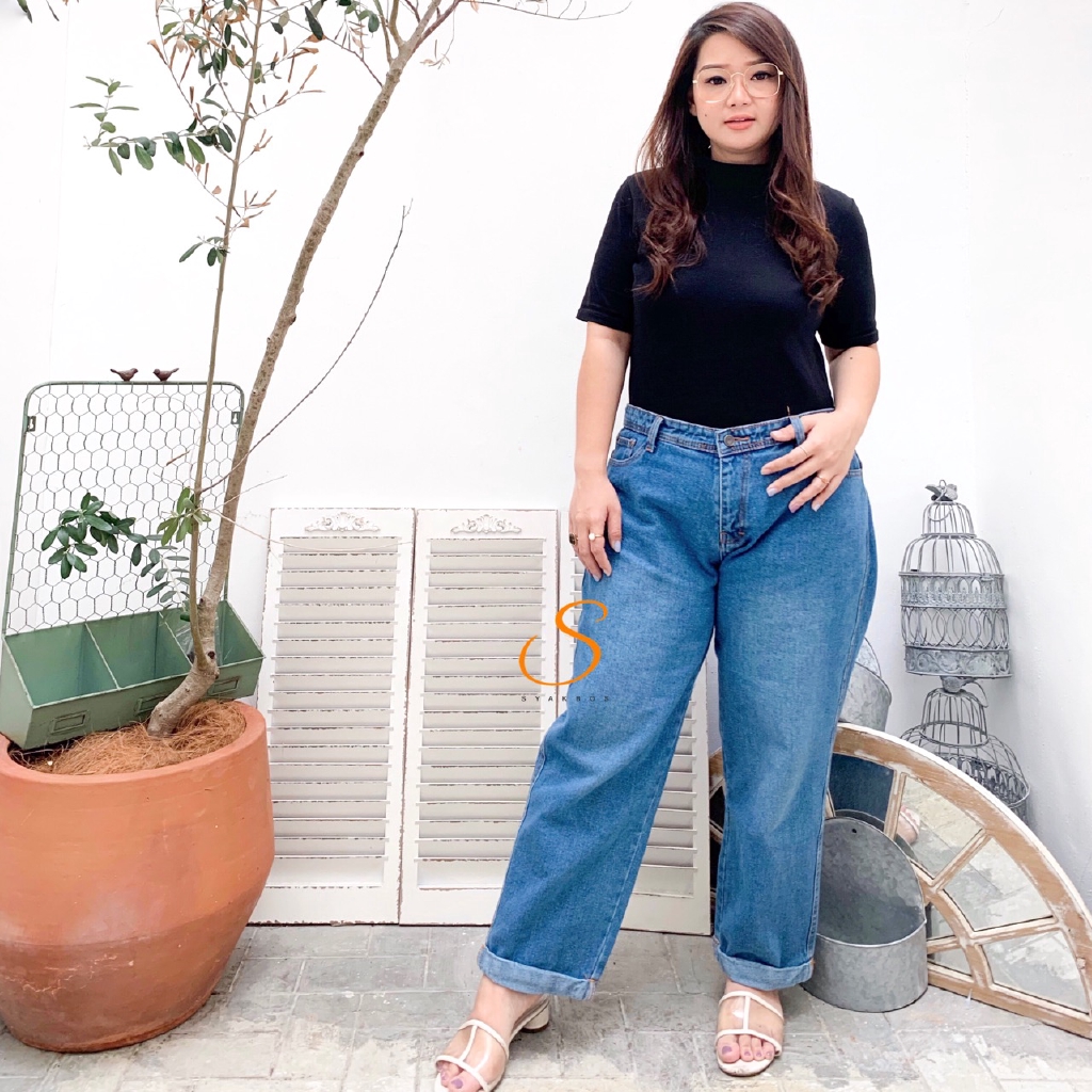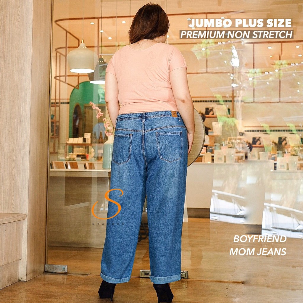 JUMBO BIG SIZE SYAKBOS Highwaist Boyfriend Jeans Wanita Medium Blue