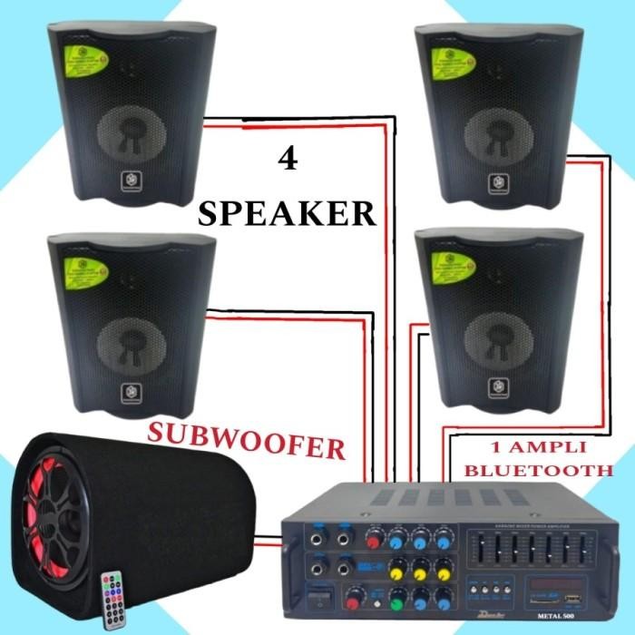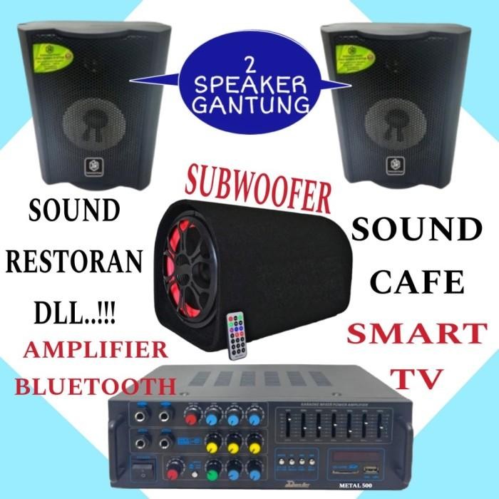 Paket Sound Mini 2 Speaker Gantung 1 Subwoofer Buat Di Cafe , Restoran, Apotek, Amplifier DUSENBERG Bluetooth..!!! - 2 SPEAKER - 2 SPEAKER