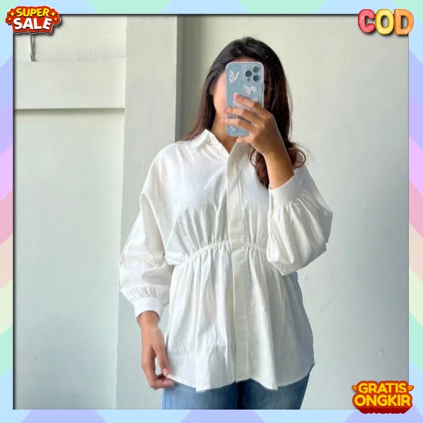 Fashion Atsan Muslim Berkualitas 2023 Baju Atasan Premium Blos Wanita Kualitas Bj Lengan Panjang Blus Kantoran Korean Style Blouse Wanita Remaja Baju Ootd Murah Bahan Adem Premium Blouse Rmaja Lengan Panjang Blouse Impor Alya Shirt - Kemeja Kerut Depan