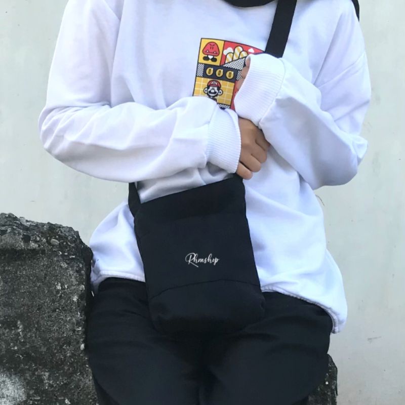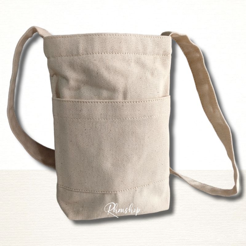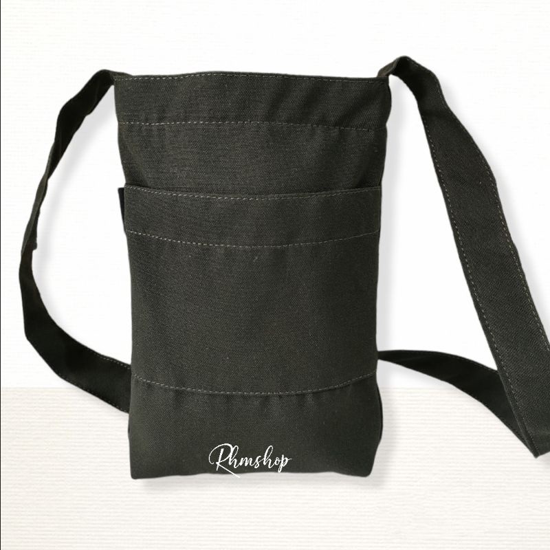 [Rhmshop] Mini Canvas Bag Pocket Dua Ruang Slingbag Mini Ada Saku Lapisan Saten Tahan Air RS 1