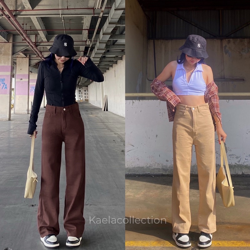 Brun Jeans Series - Highwaist Kulot Loose Vintage Jeans Celana Panjang Wanita Coklat