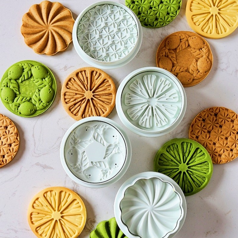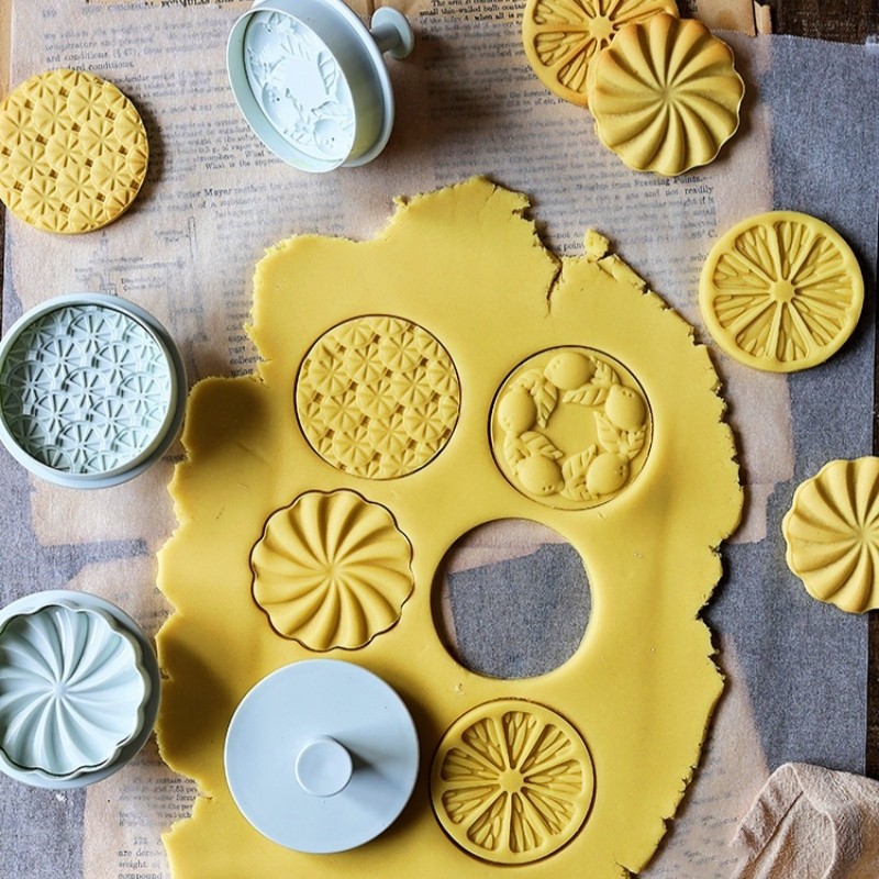 4Pcs/Set Lemon Pattern Cookie Cutter Mould Fruit Shape Biscuit Stamp Embosser Steamed Bun Bread Hand Pressed Mold Baking Gadgets