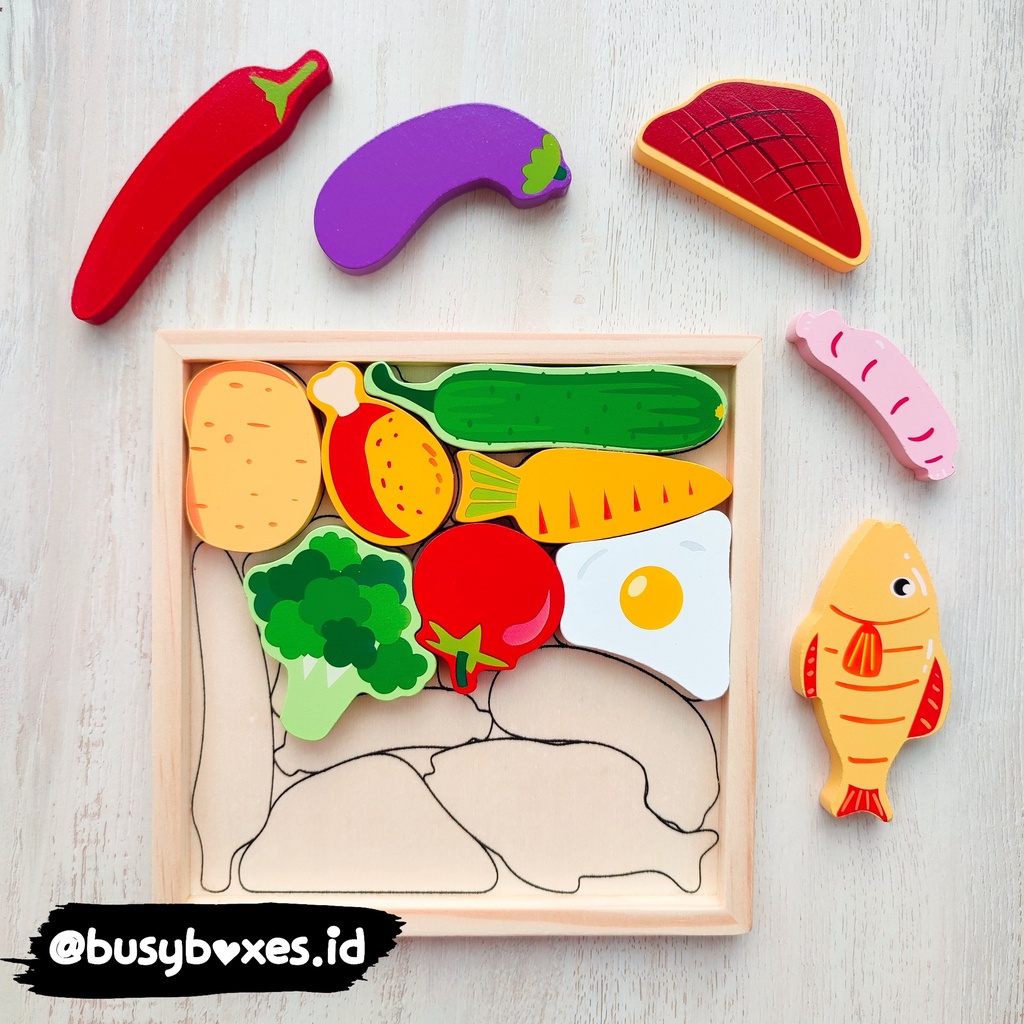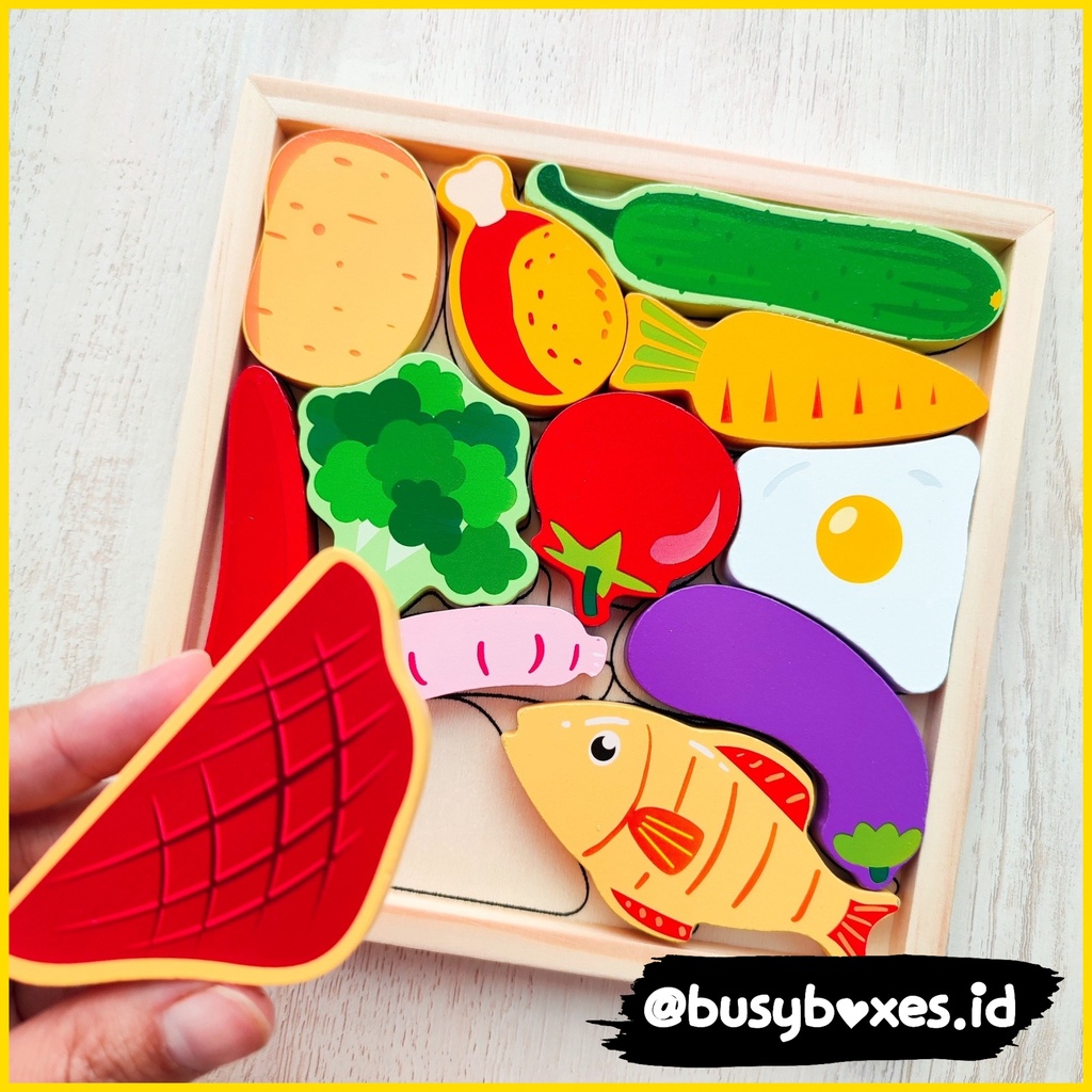 [busyboxes.id] Mainan Edukasi Pretend Play Masak-masakan bahan masakan puzzle kayu chunky puzzle