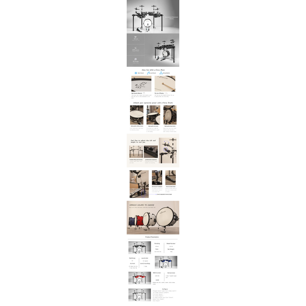 E-Force Music F30 Series Electric Drum Kit High Quality Portable Hybrid Electronic Musical Instrument Made of Durable Metal