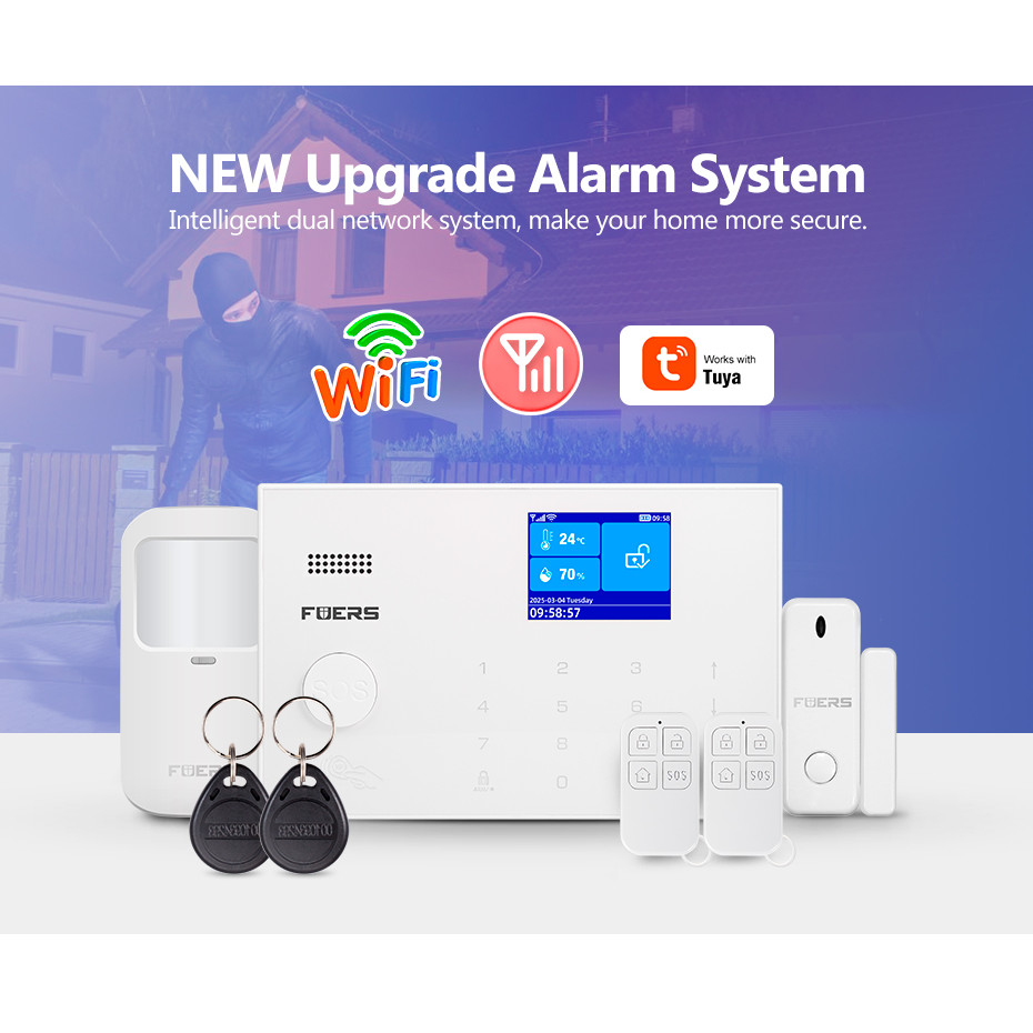 FUERS Tuya Smart WiFi GSM Wireless Home Security Alarm System White AntiTheft Alarm Kit with APP Control Camera