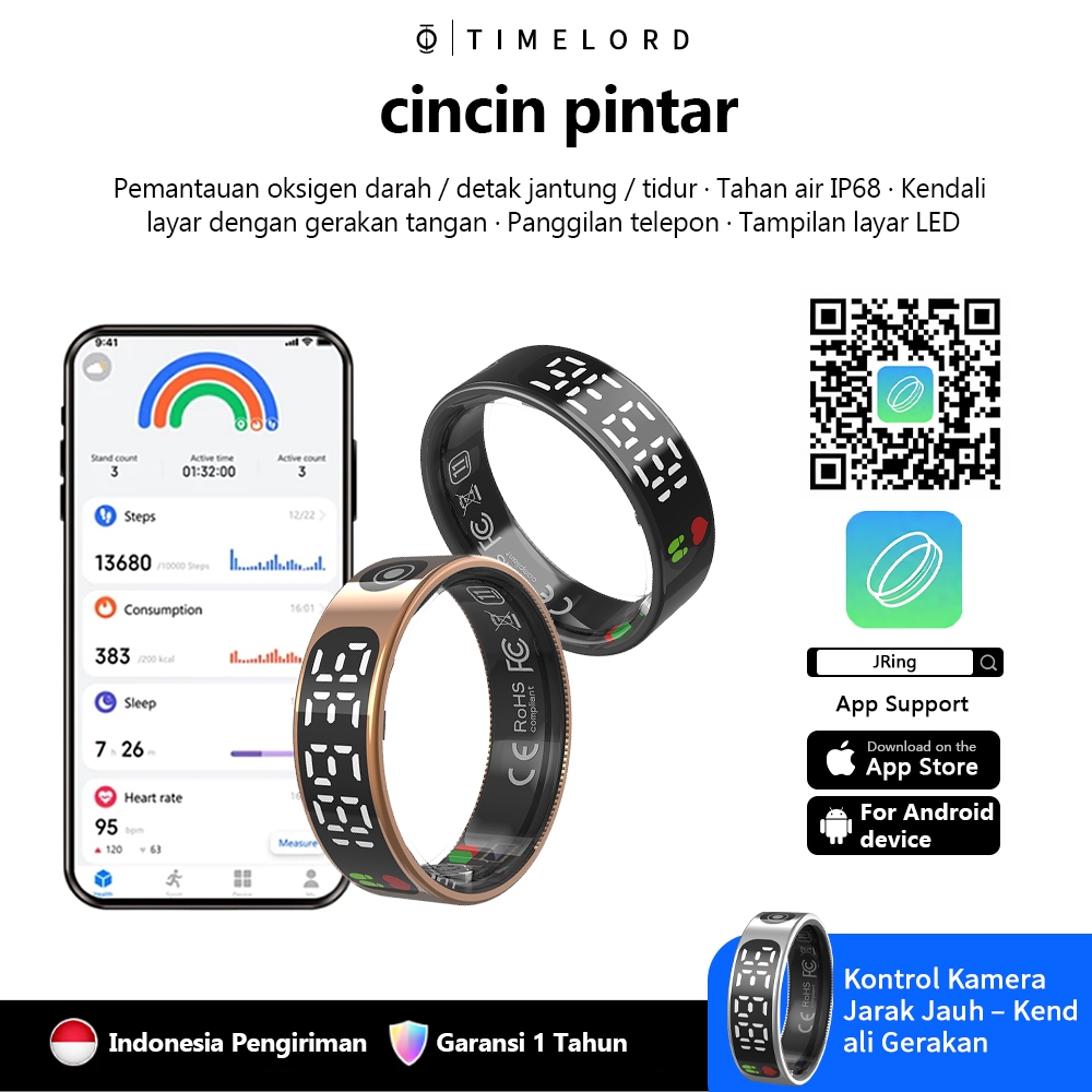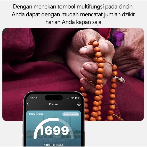TASBINA - Cincin Pintar R1 Smart Tasbih Digital Ring Zikr1 Lite Tasbeeh Counter Zikir LED Display Cincin Unisex