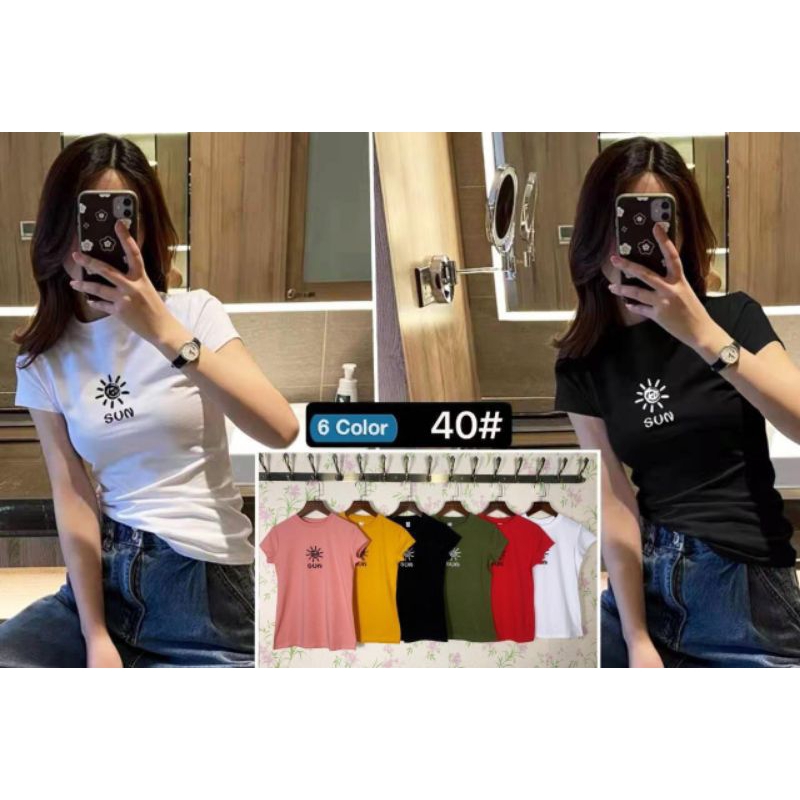 Kaos Wanita Motif Bordir Sun 40 Bhn Katun LD80 Melar - Import - Panjang, Polos, Pendek, Top, Cewek, Baju, Oversize, Atasan