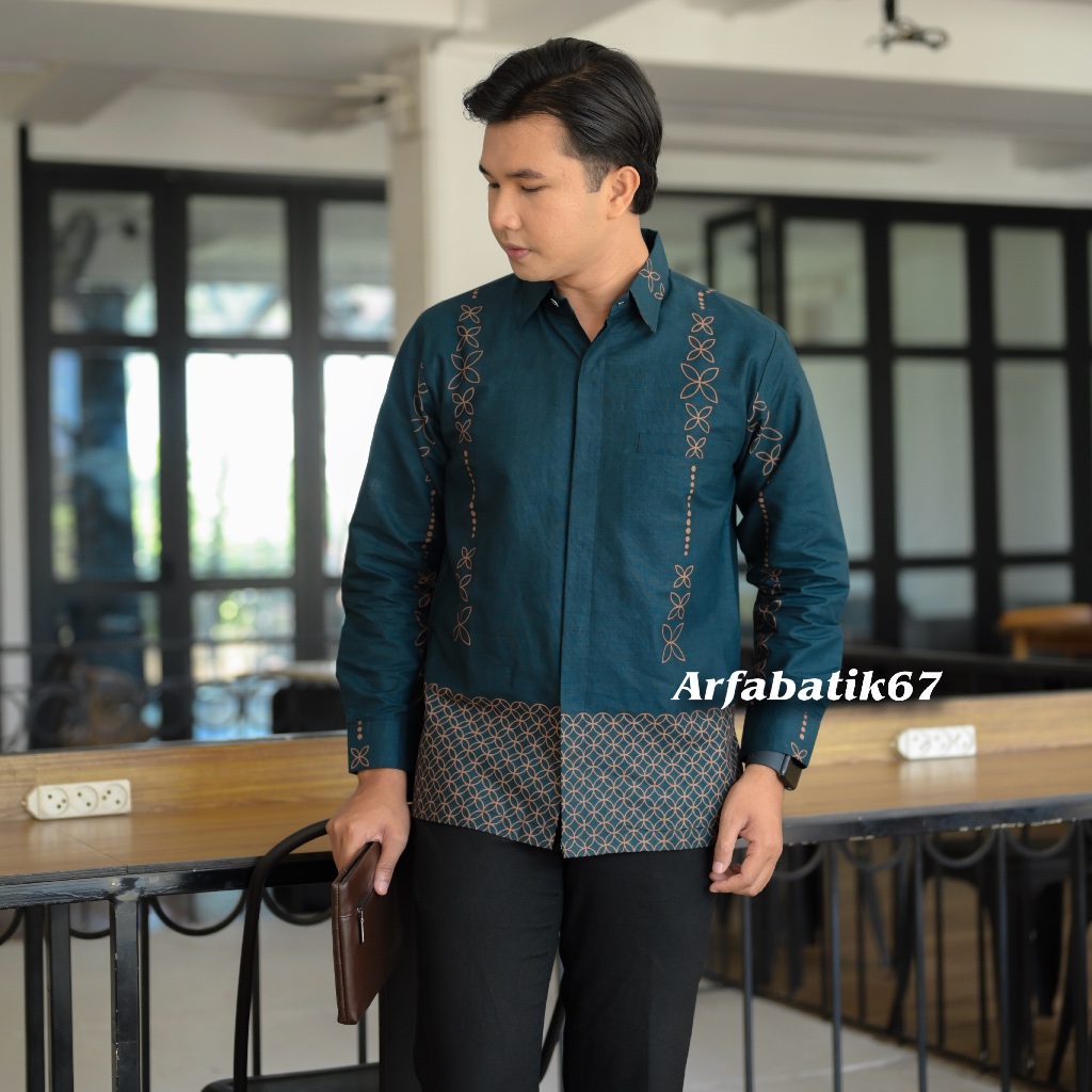 Discount Kawung Blue Emerald Kemeja Batik Pria Lengan Panjang Dan Lengan Pendek Katun Pria Premium