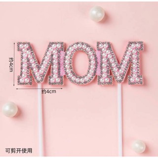 HBD Topper Boneka Tulisan MOM Mutiara Mama Mother Bunda Ibu Dekorasi Hiasan Kue Ulang Tahun Happy Birthday Cake Bday