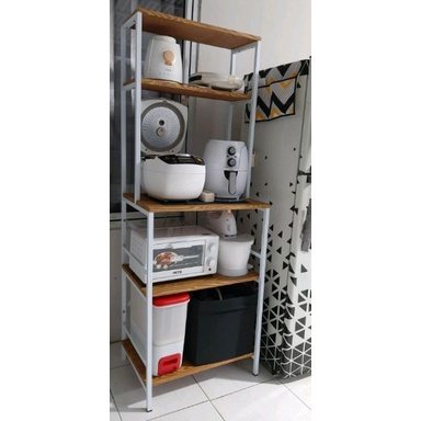 Rak Dapur Oven Microwive Serbaguna Multifungsi Rak bumbu Minimalis Besi Rak Penataan Ruang Hiasan Buku