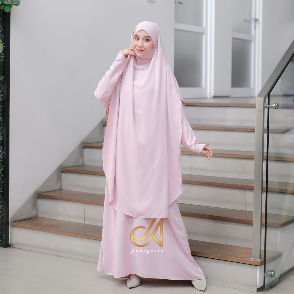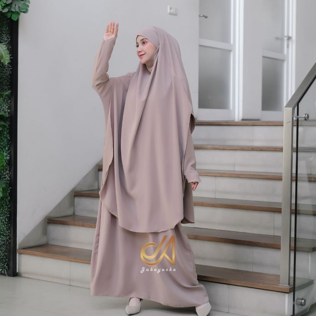 Jabayaska - Madeena Abaya Lebaran Jumbo Set French Khimar Bahan Anti UV Gamis Umroh Dress Elegant Cantik