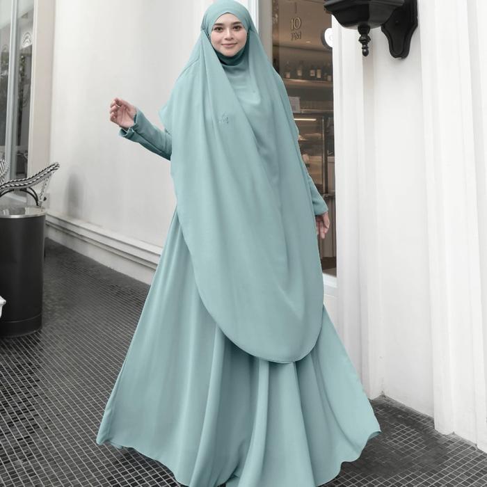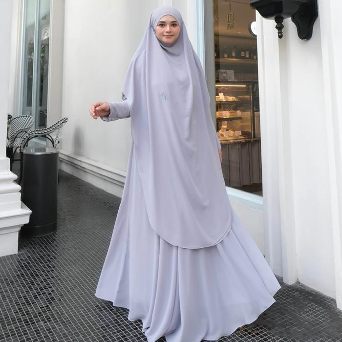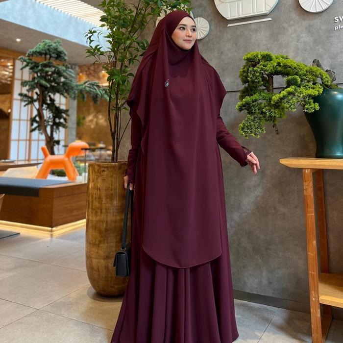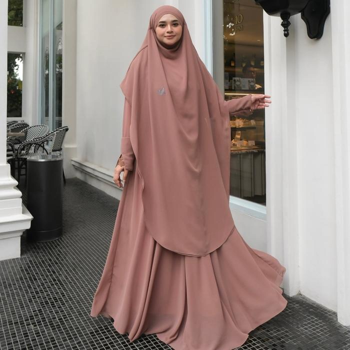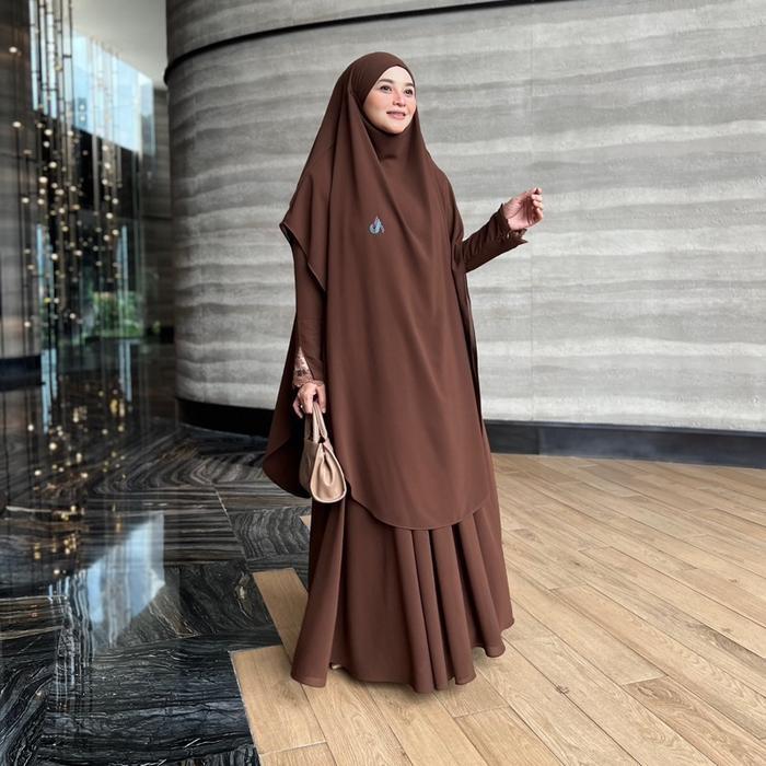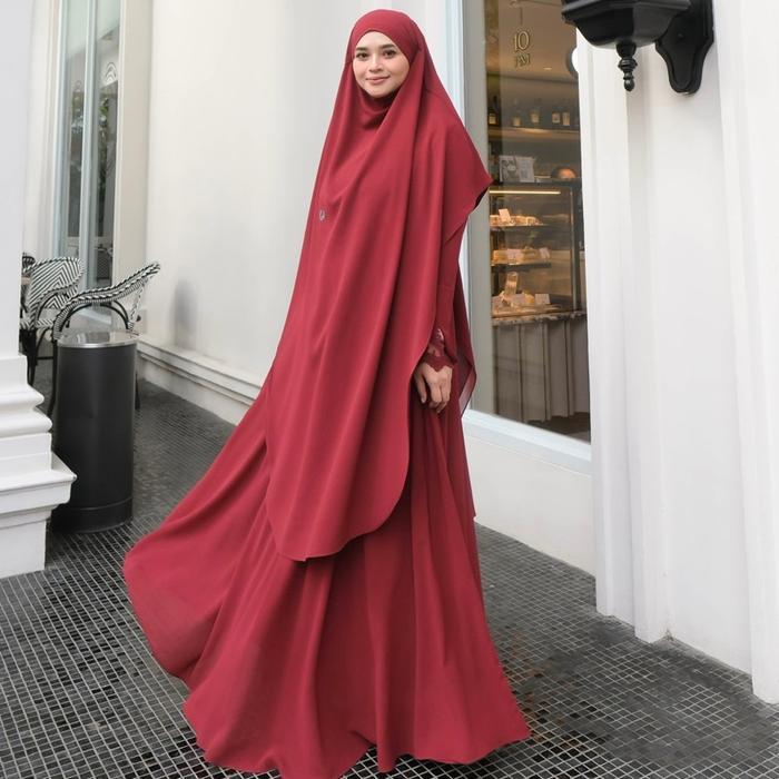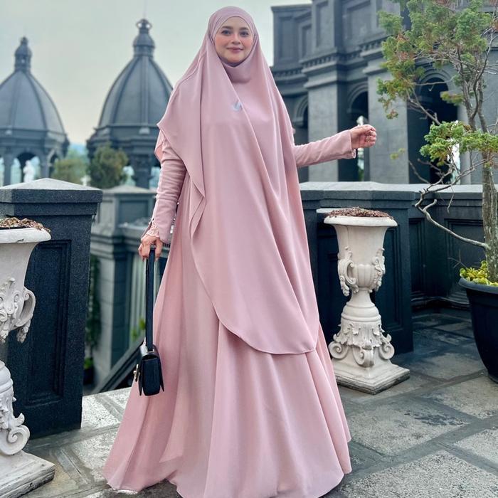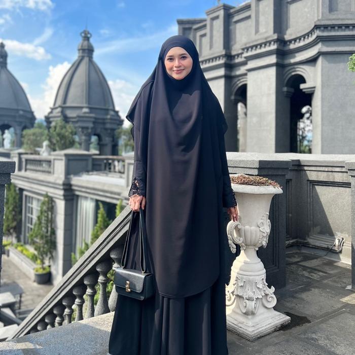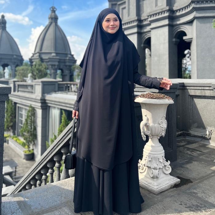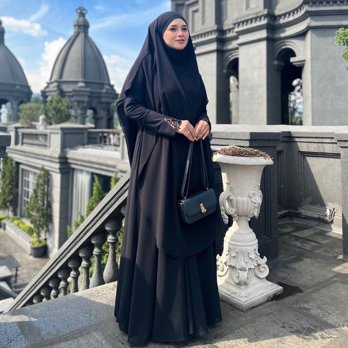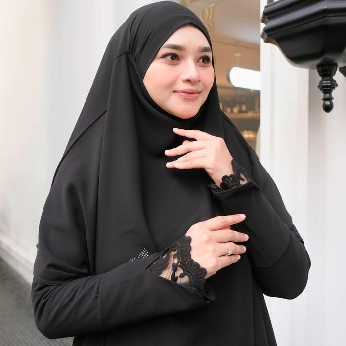 Jesi Achmad Adiva Set Gamis Dress Abaya Syari Lengan Brukat Bahan Ceruty Mix Lembut Mewah untuk