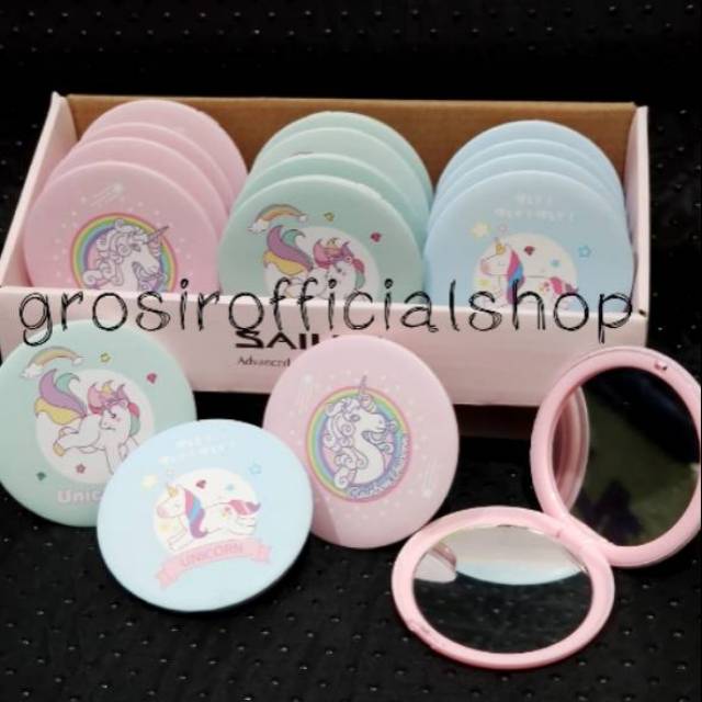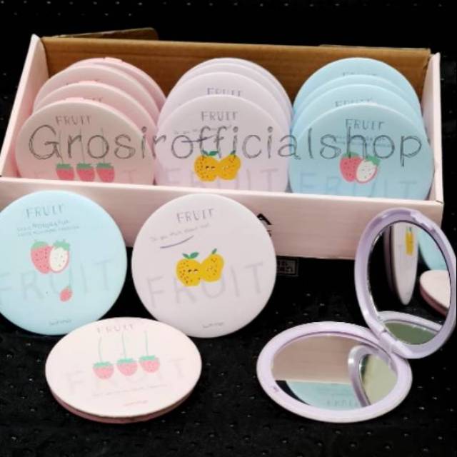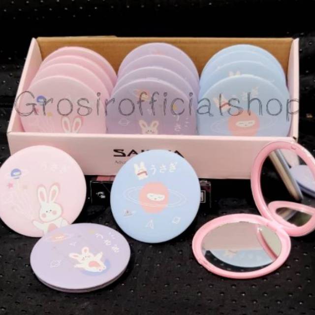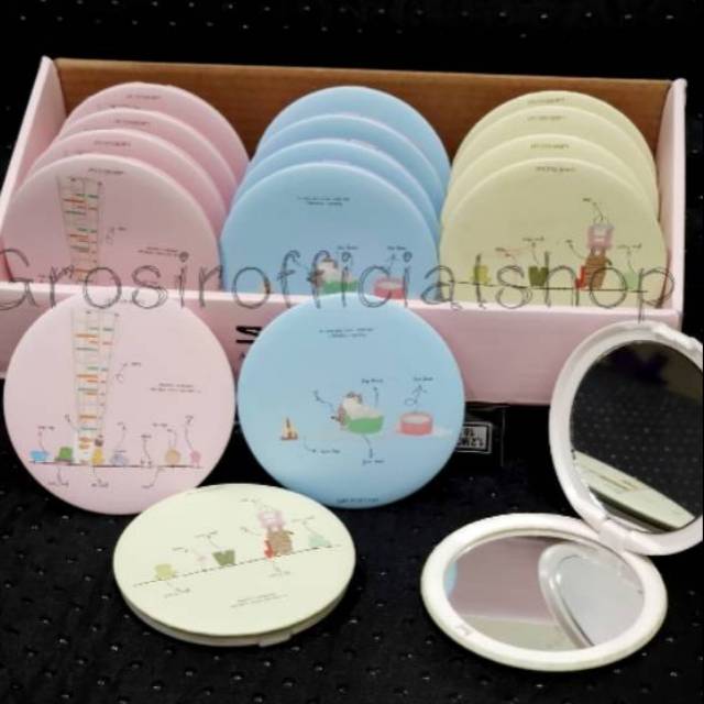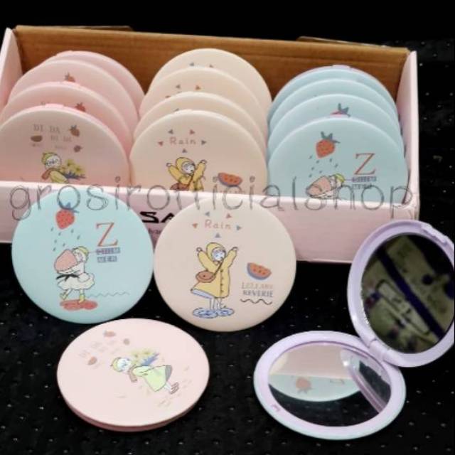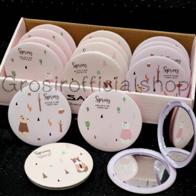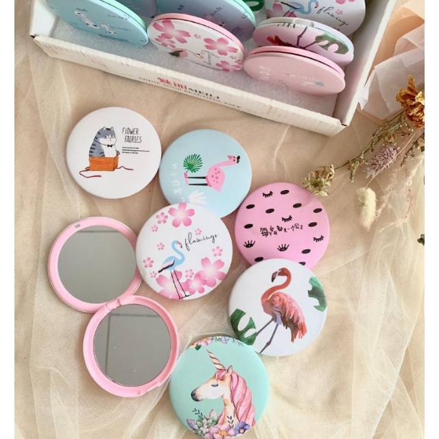 Cermin Kaca Rias Makeup Lipat Double Slide Leather Small Round Bulat Mini Dua Sisi Portable