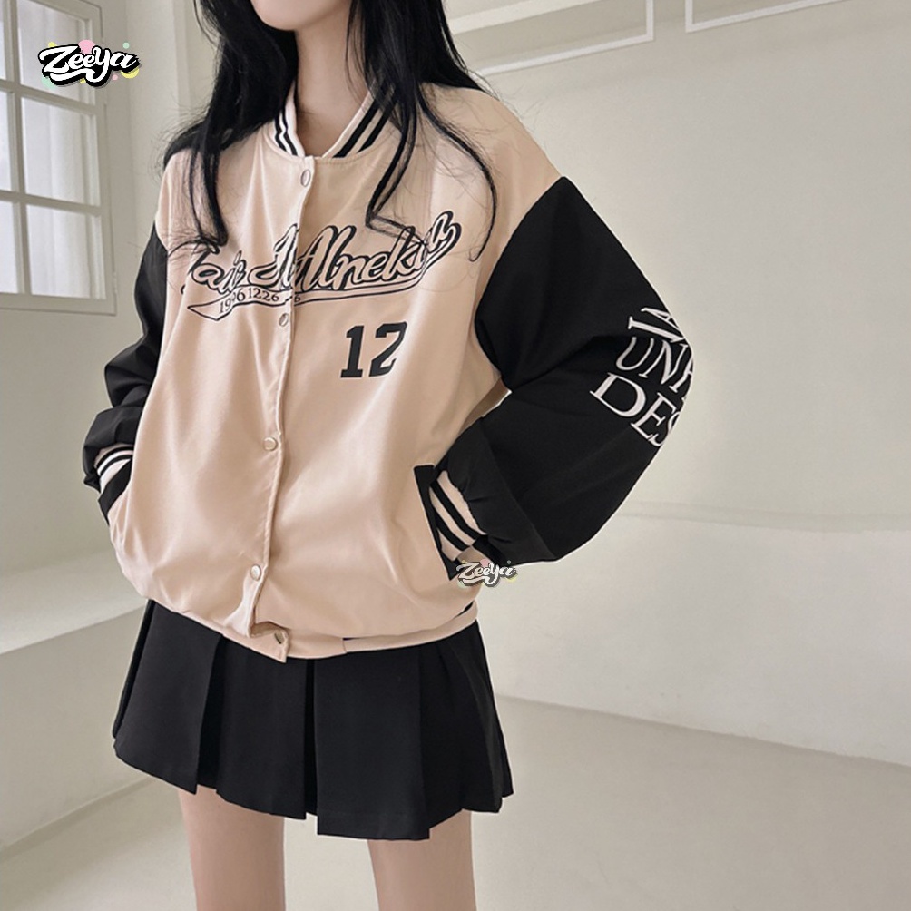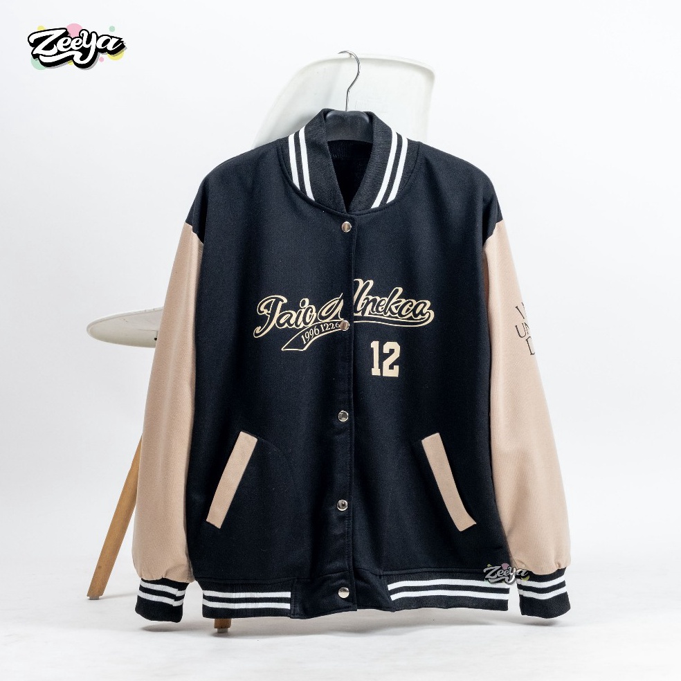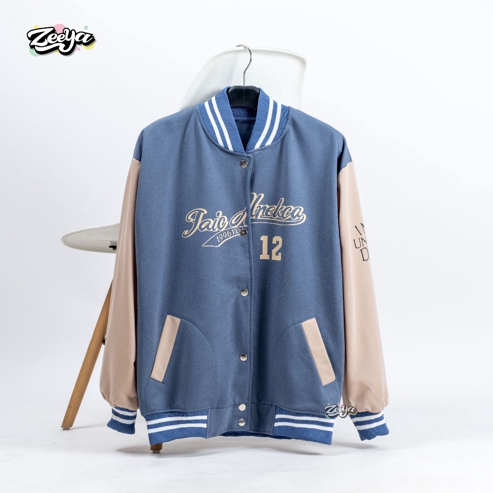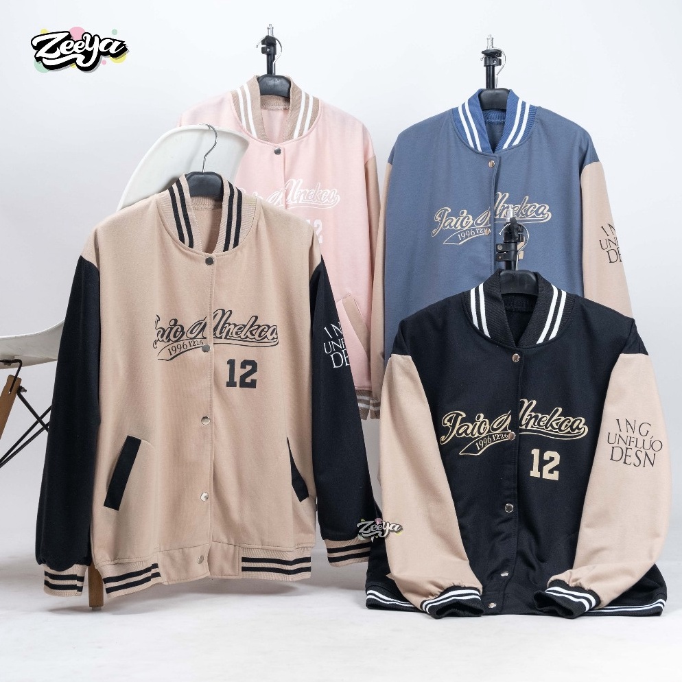 ZY UNFLUO DESN Varsity Jacket Baseball Wanita Dan Pria Lettering Style Outer Remaja Baju Dewasa u R7M5