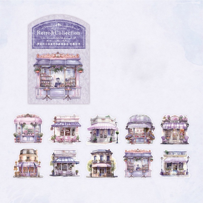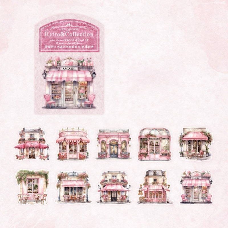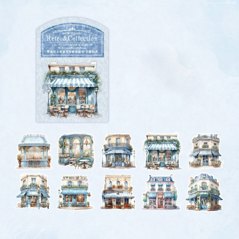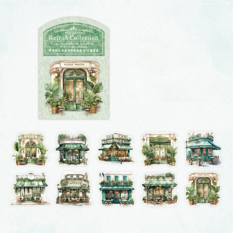 10pc Sticker washi building retro house store cafe SWB