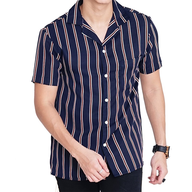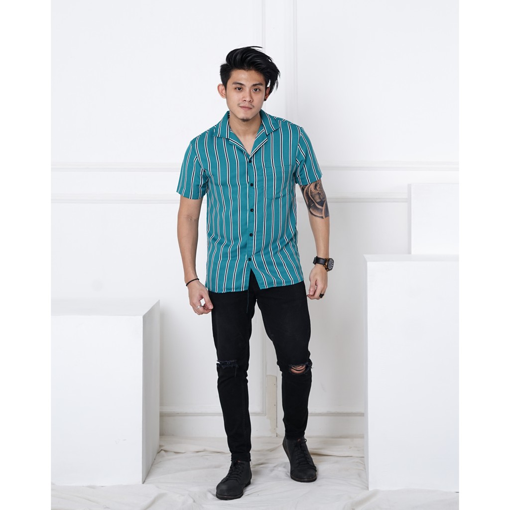 KEMEJA PRIA CASUAL SALUR STRIPE LENGAN PENDEK || ACTBASIC