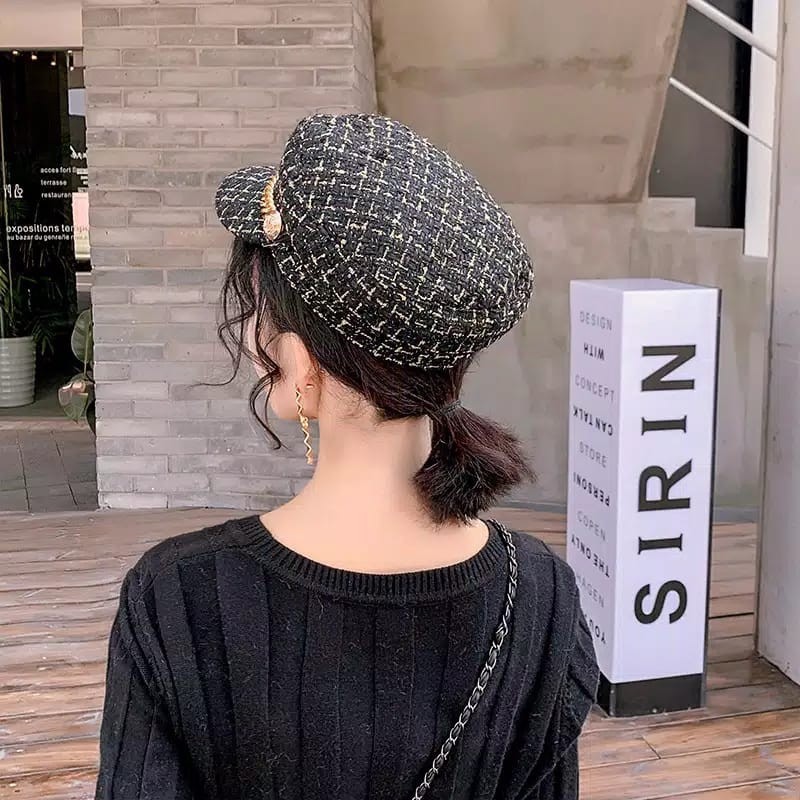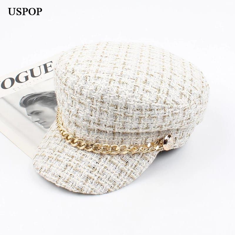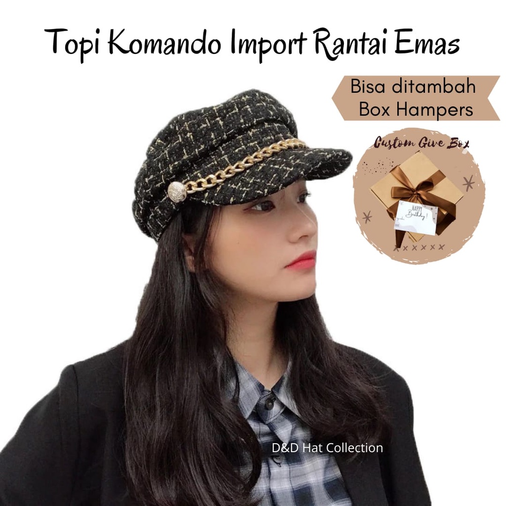 Topi Komando Rantai Import Plaid Chain Military Captain Retro Hat