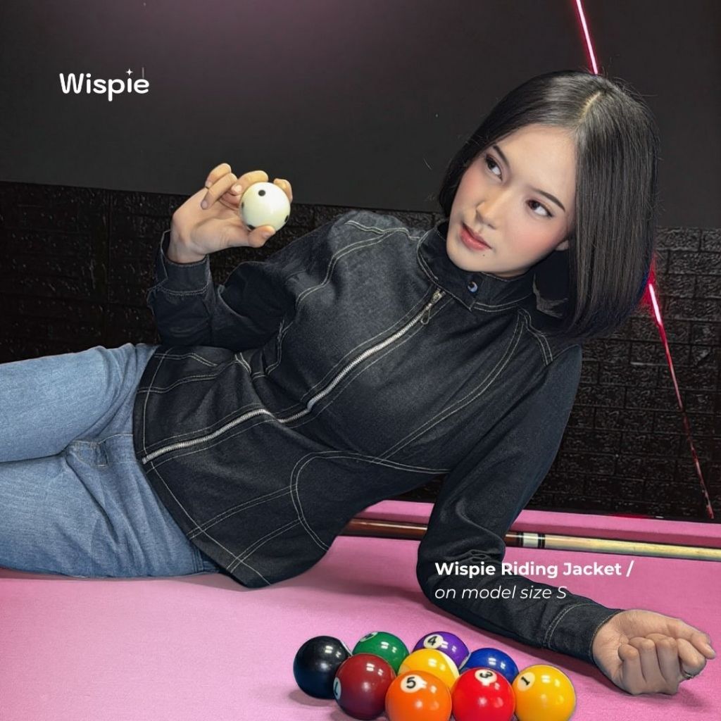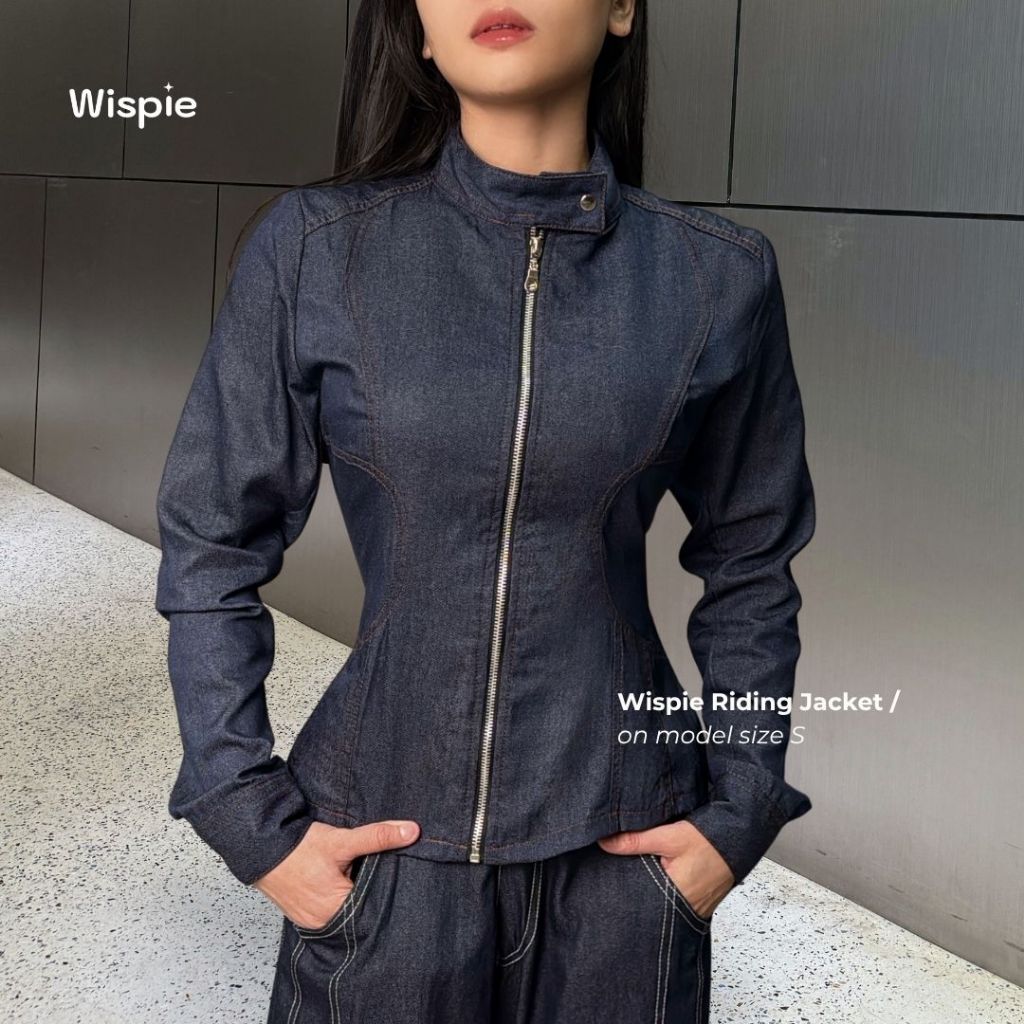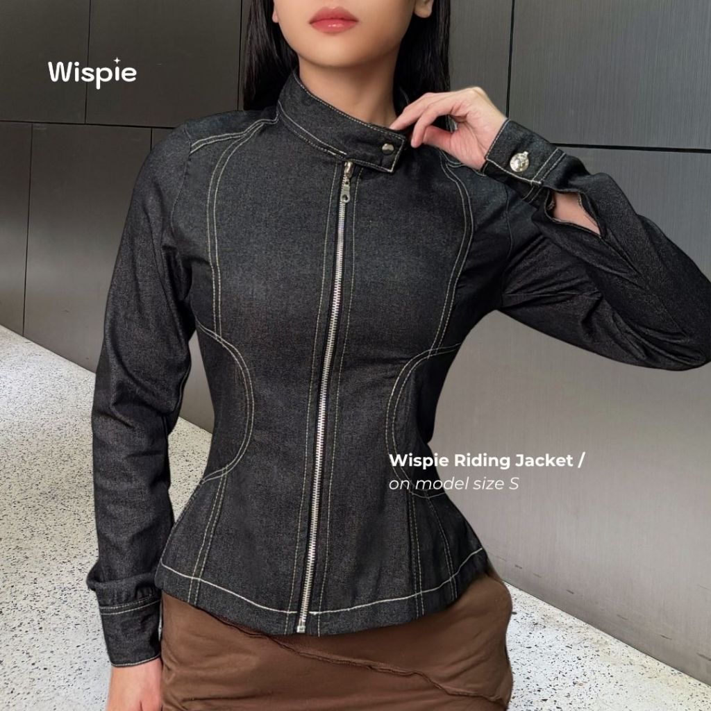 best sale wispie riding jacket outer denim jaket wanita zipper lengan panjang hitam navy