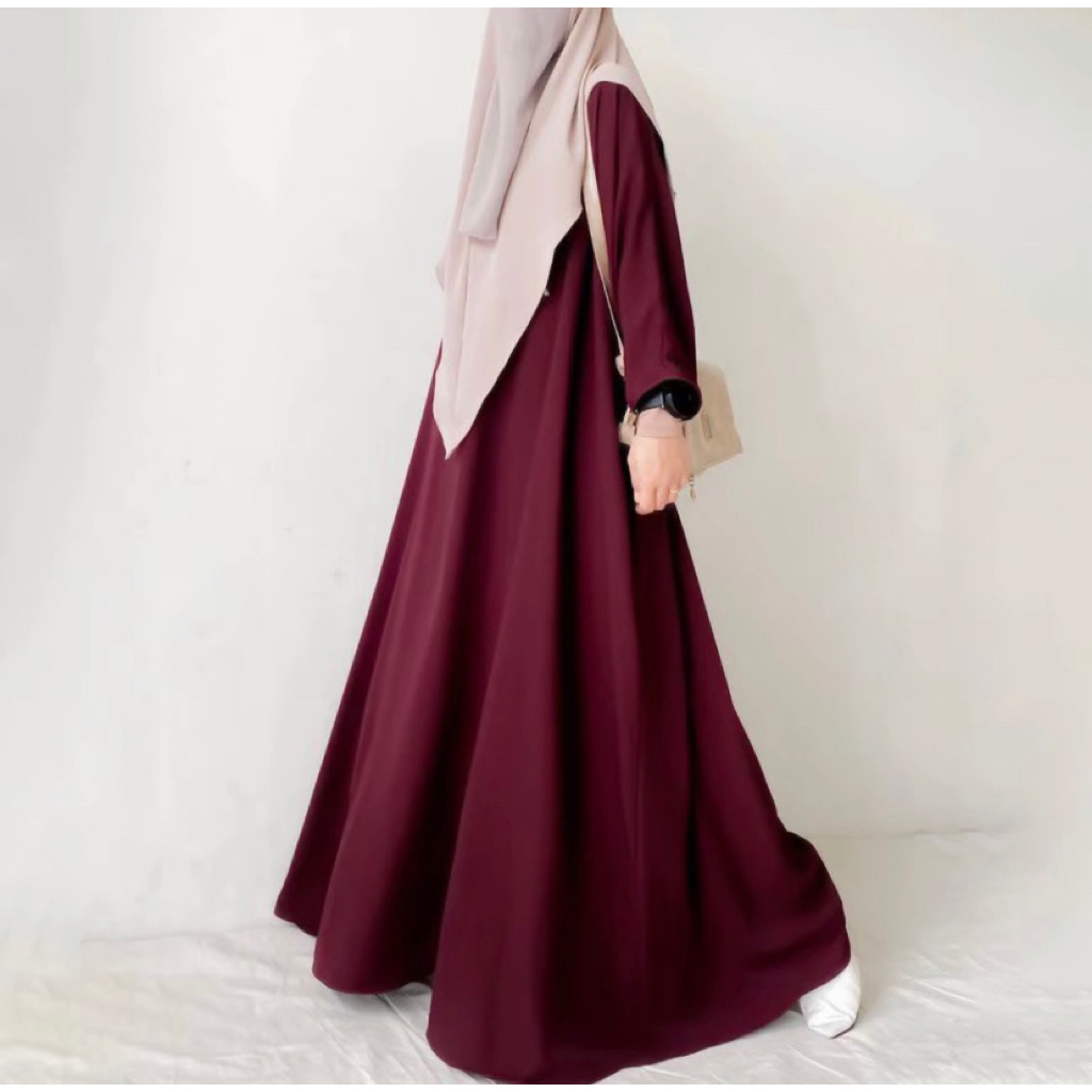 Alesa Abaya Lengan Kalong Sabrina Anti UV Polos Panjang Maxi Baju Umroh Size M-XXL