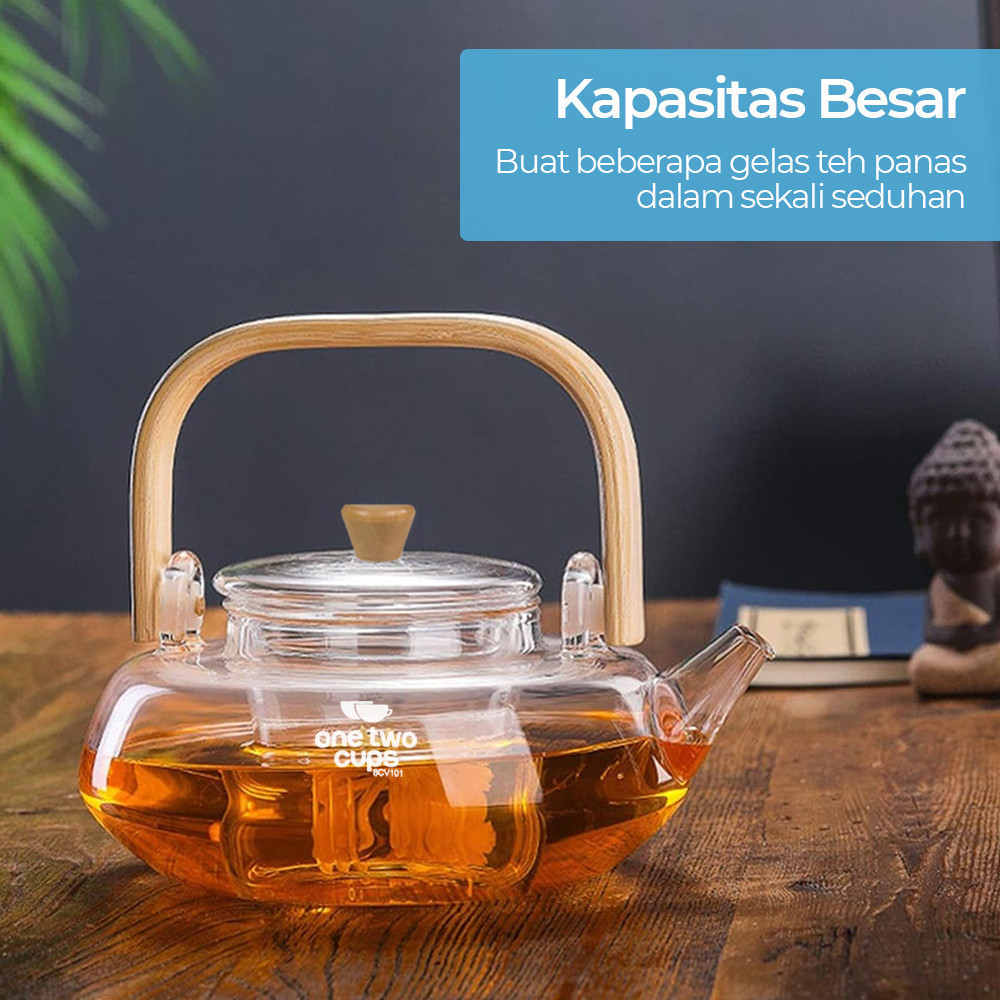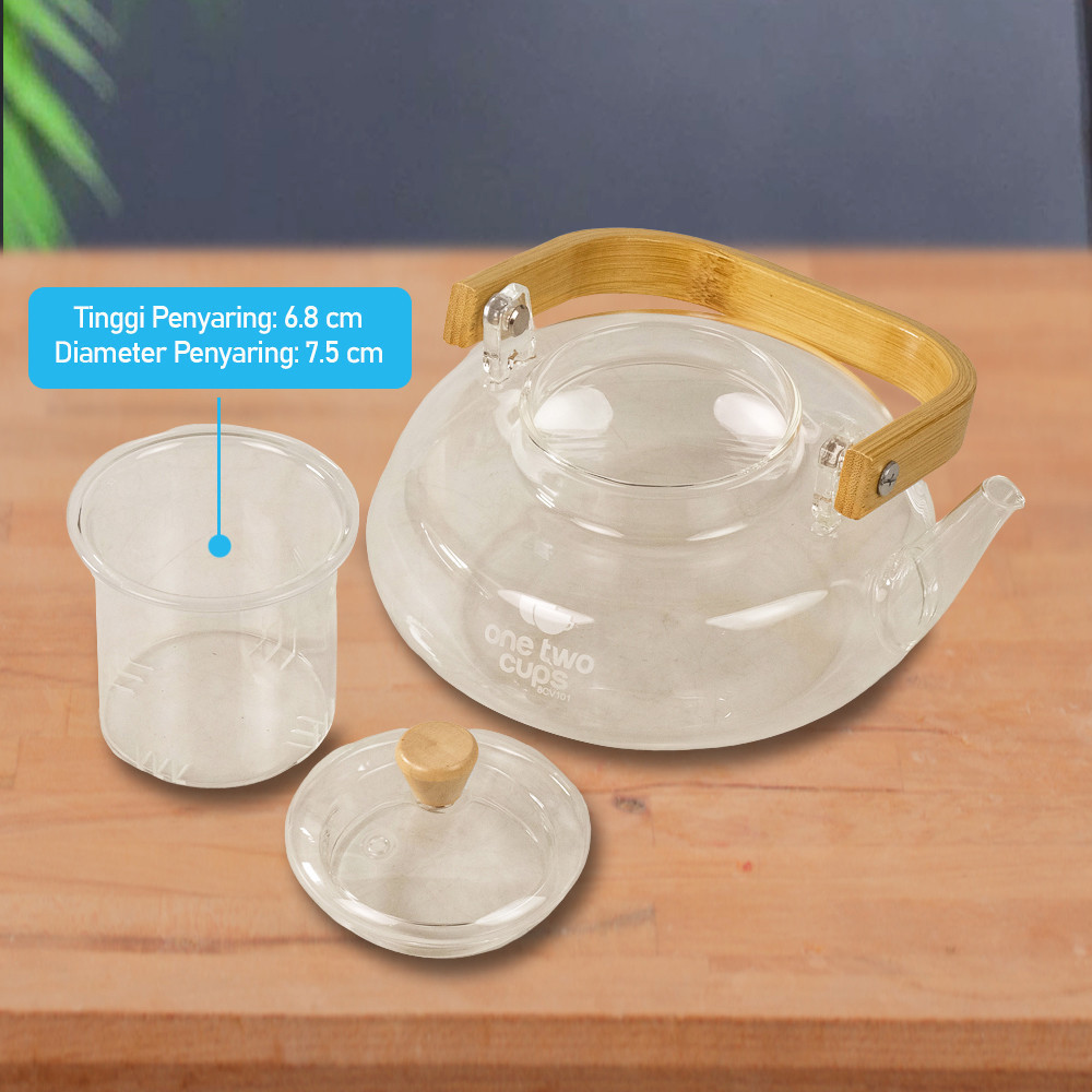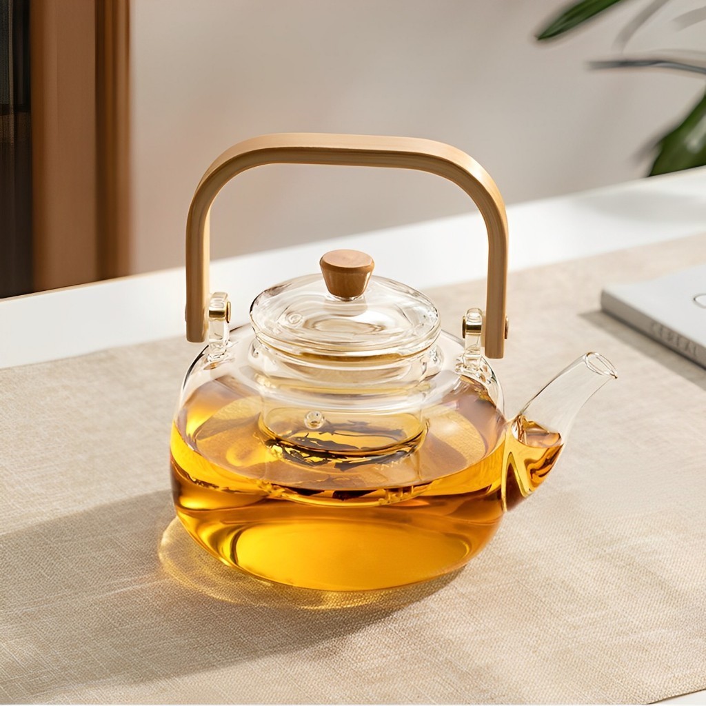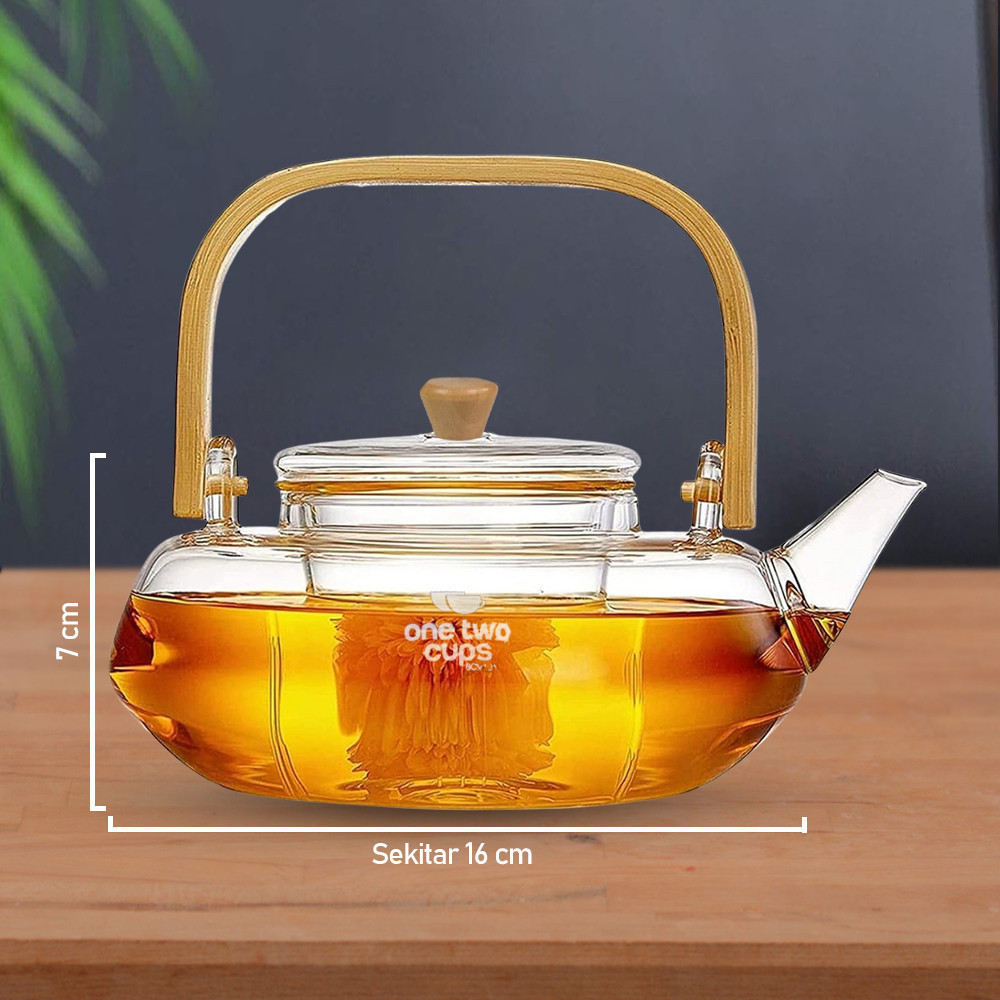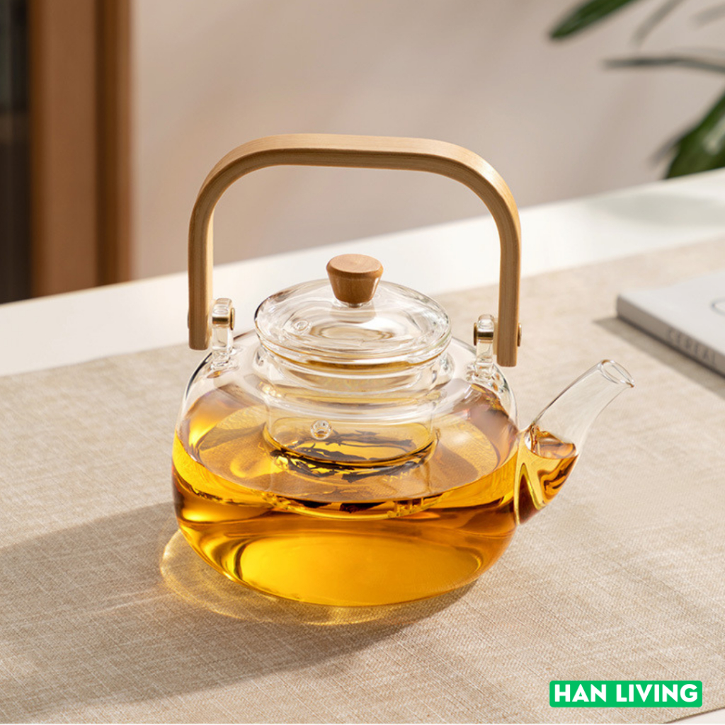 HANLIVING Teko Pitcher Gagang Kayu Glass Teapot Japanese Style 1000 ml - Transparent