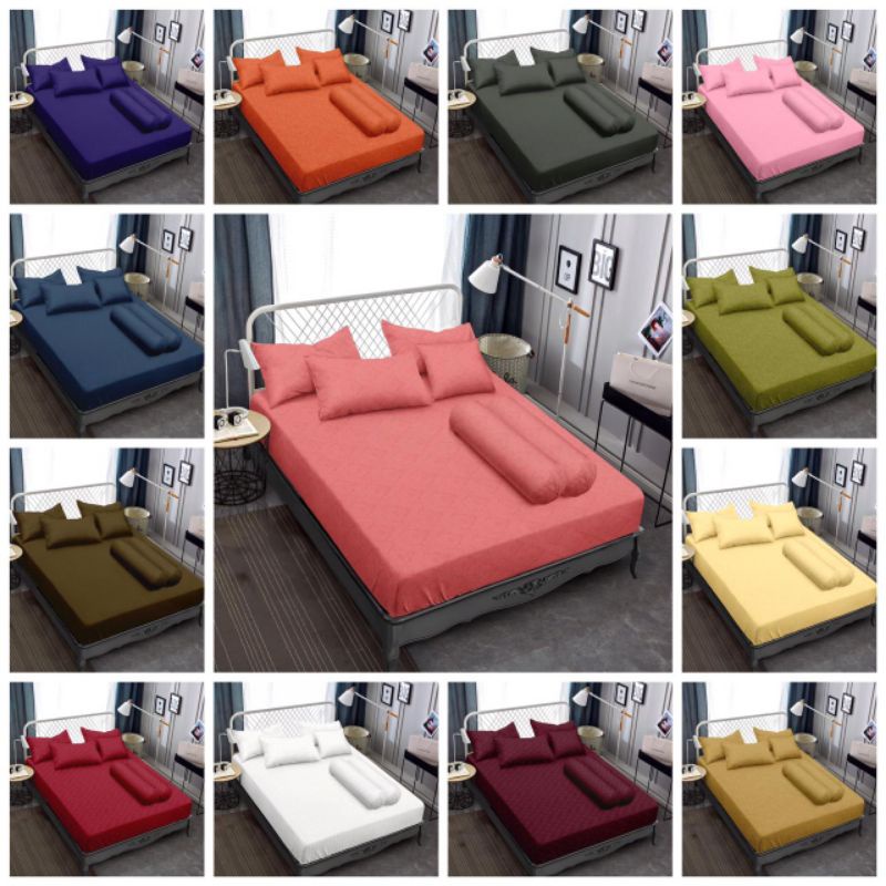 Vallery Quincy - Sprei Polos Embossed King T30 ( 180x200x30 ) - Sarung Bantal dan Sarung Guling Jumbo - Warna Terlaris dan Terbaru
