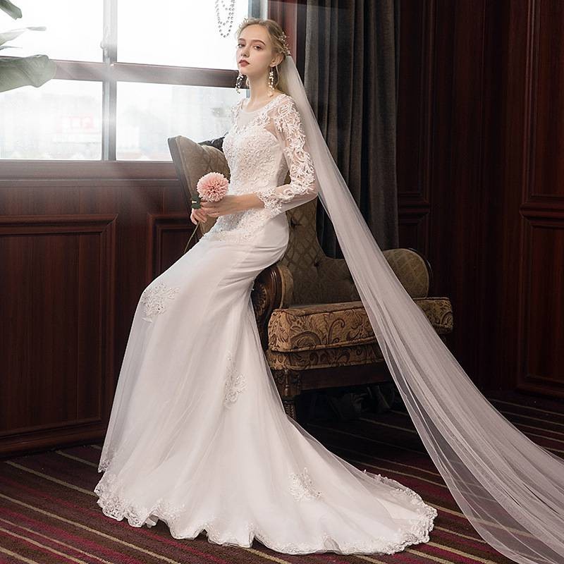 W88 READY STOCK. Elegant Women Bridal White Mermaid Wedding Dress Slim Long Fish Tail Bride Dress