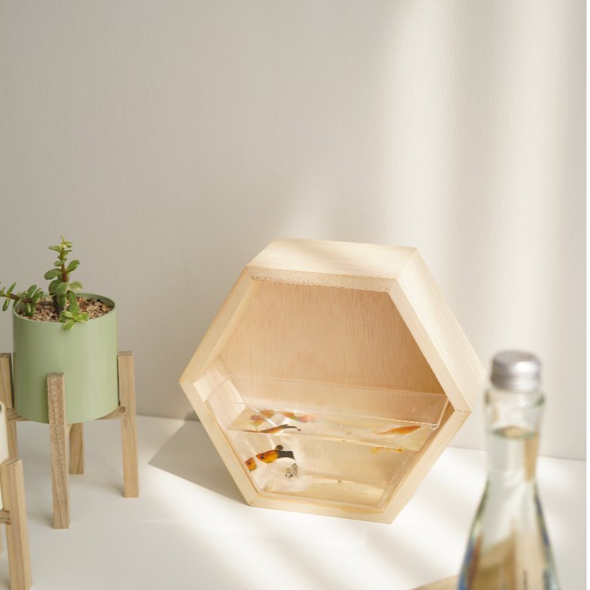 Hexagon Mini Aquascape dinding / Akuarium Mini untuk ikan cupang