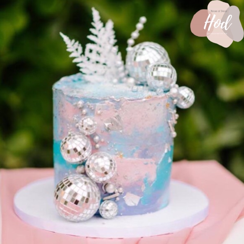 Topper Disco Ball Hiasan Kue Bentuk Bola Disko Club Gantungan Pohon Natal Hiasan Rumah Dekorasi Birthday Cake Silver
